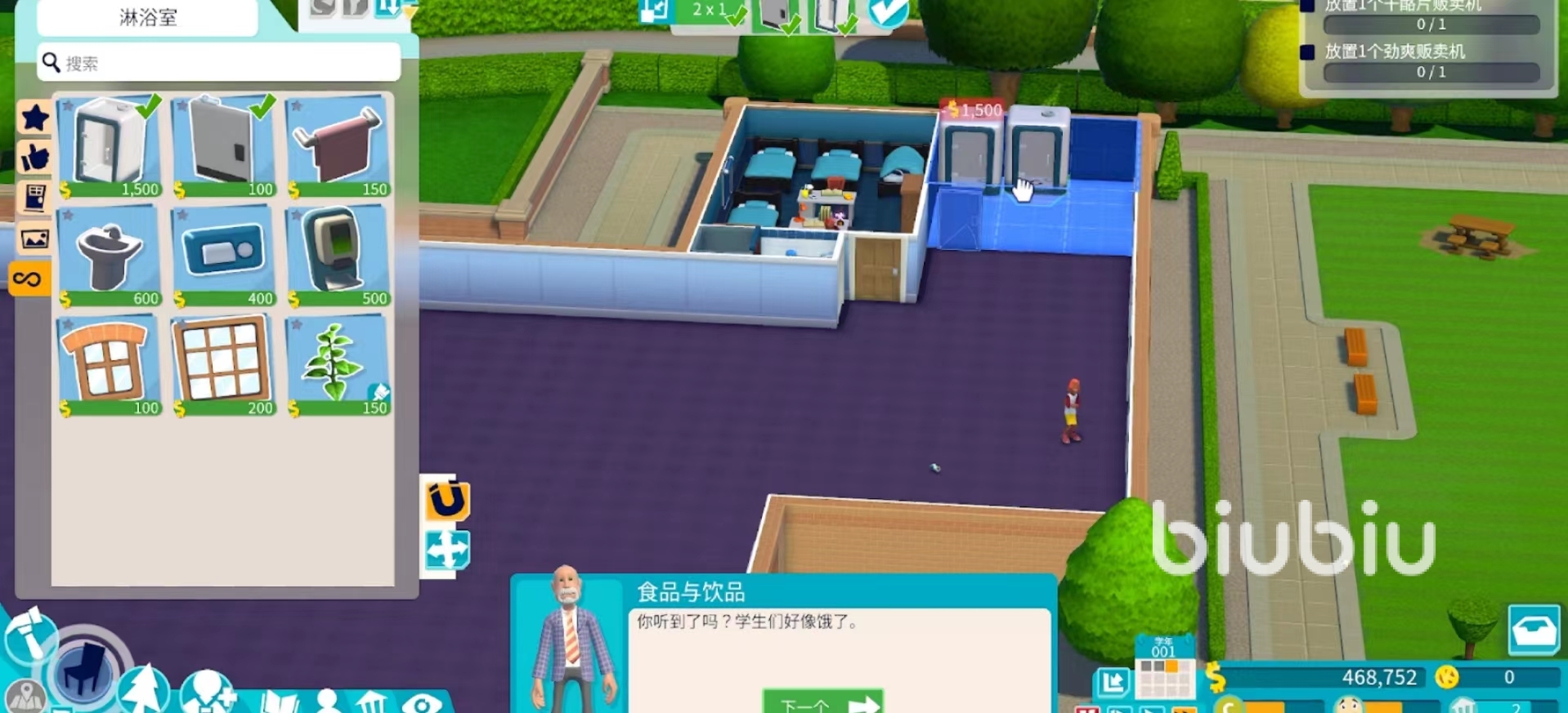 同樣點擊左下角第二排的人像,招攬負責打掃衛(wèi)生的員工,該員工可在學校內(nèi)的任何位置,并在校園內(nèi)任意位置放置一個垃圾桶,一個干凈的校園也可以提升學生的幸福度。
