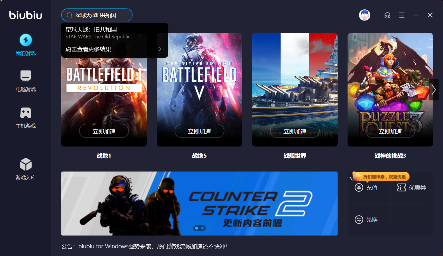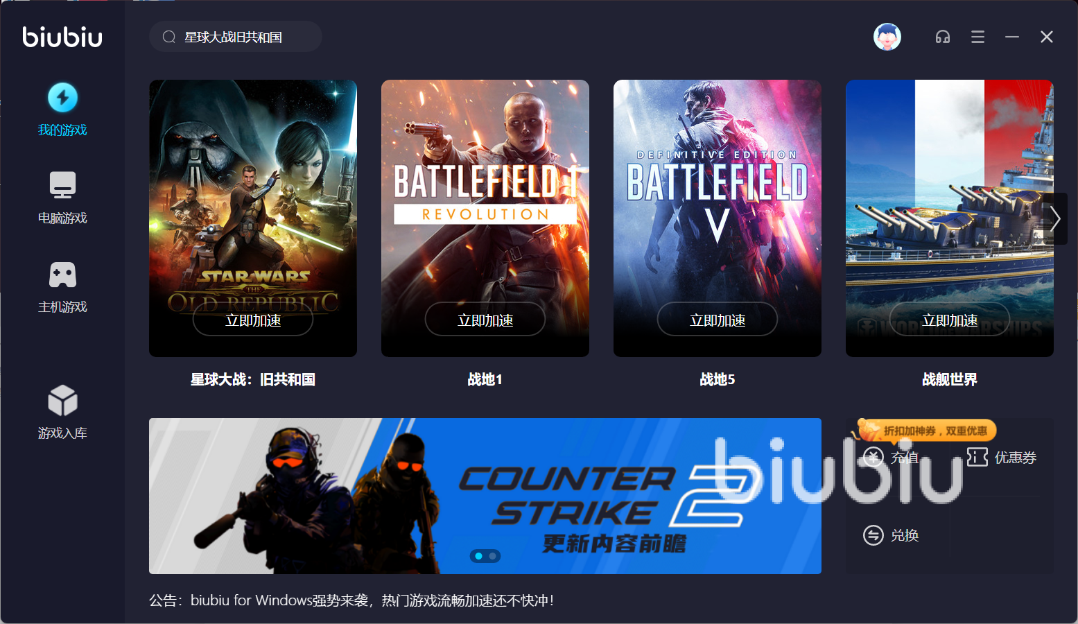 第一,下載biubiu并安裝,它下載鏈接在上方。biubiu支持端游和手游、STEAM平臺加速,對于網(wǎng)絡(luò)游戲覆蓋率高。