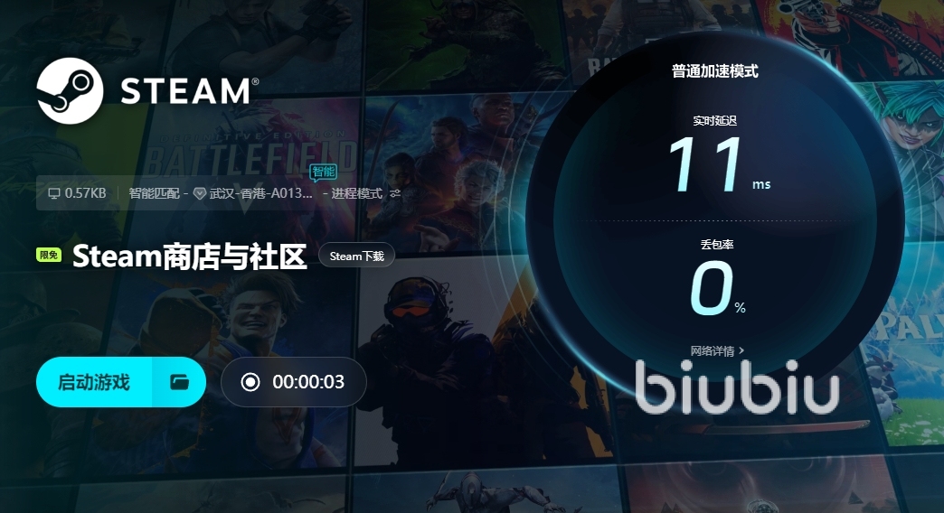 現(xiàn)如今網絡游戲已經成為了眾多用戶放松身心的首選,然而網絡延遲、卡頓及掉線等問題頻發(fā),極大影響了玩家的游戲體驗,尤其是steam打開和運行等,卡頓明顯的話,對于游戲本身也是會存在影響的,針對這一現(xiàn)狀,各位可優(yōu)先考慮去通過biubiu來幫助自己穩(wěn)定,它可通過優(yōu)化數(shù)據(jù)傳輸路徑,有效緩解大家的延遲、丟包現(xiàn)象,確保游戲過程的流暢穩(wěn)定。