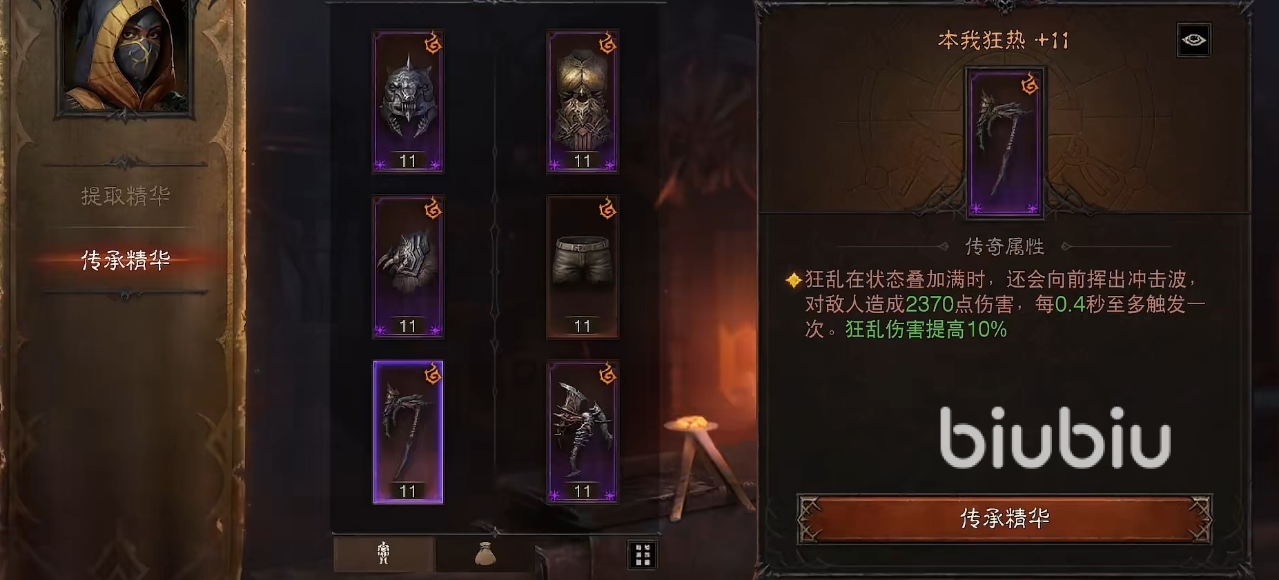 在傳奇特效方面,武器選擇本我狂熱,能夠最大限度提高狂亂的輸出,因?yàn)樵诒咎淄娣ㄖ锌駚y才是輸出主要來源。副手武器選擇破碎之魂,能夠提高瞬間爆發(fā)能力,肩膀選擇怯懦者之災(zāi),在激活不滅者之怒時(shí),能夠降低周圍敵人的移動(dòng)速度,對(duì)付遠(yuǎn)程職業(yè)尤其好用。褲子選擇憤怒尖嘯,衣服選擇追捕者之怒,效果是在釋放沖撞之后提高造成傷害。頭盔選擇復(fù)蘇之息,可以提高疾奔效果持續(xù)時(shí)間,更好的去追擊敵人。