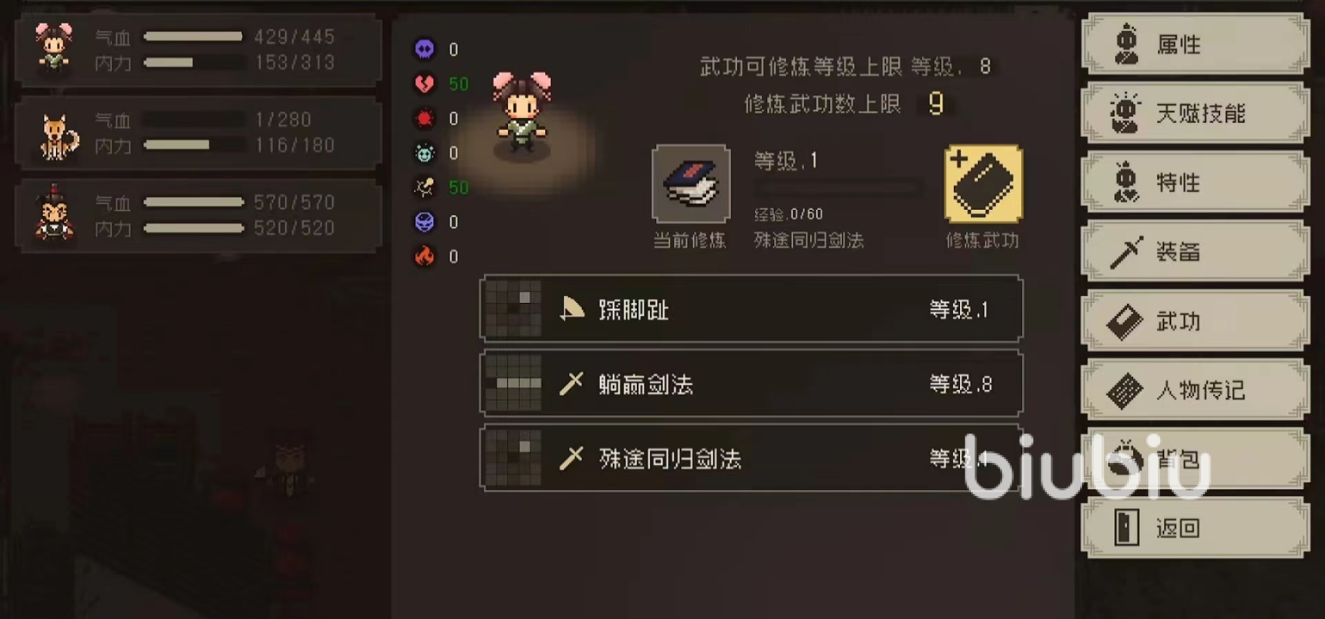 玩家想要習(xí)得音律武學(xué)、劍法、指法有著悟性屬性的要求,角色悟性值越高,學(xué)習(xí)武功的速度更快。
