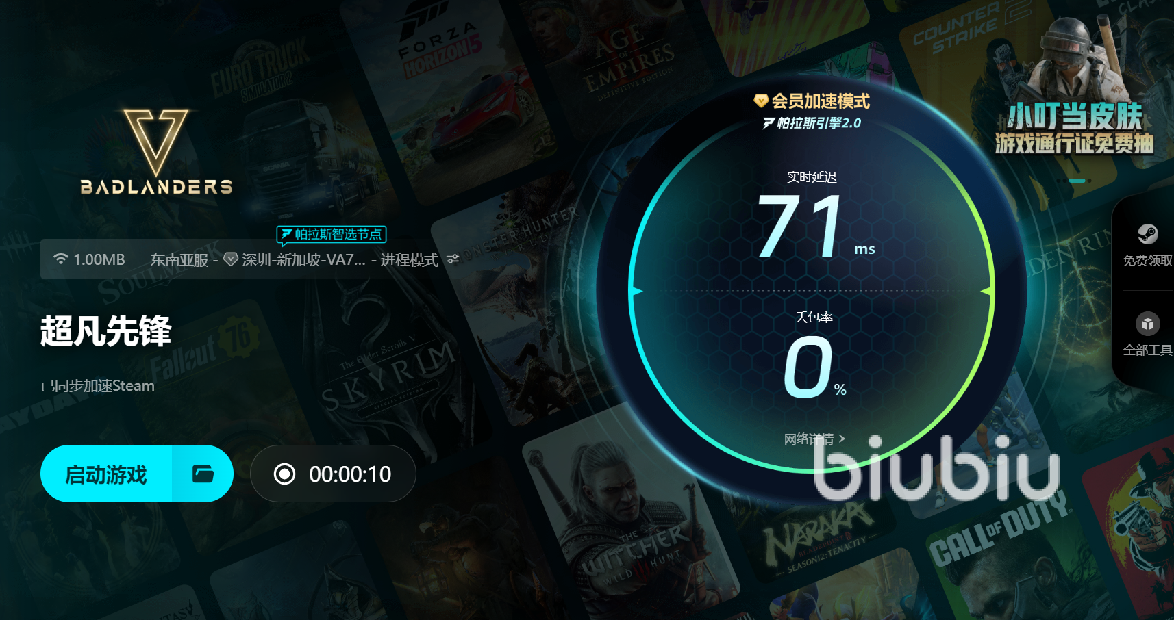 目前這就是小編提供的超凡先鋒閃退怎么辦的全部信息,超凡先鋒對局中pk的時間是很長的,幾乎每分段都會遇到敵人,而這些敵人都很聰明需要找到角度將其擊殺,過于卡頓難受的,那biubiu加速器就是一個值得信任的加速器!