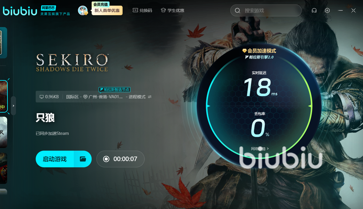 只狼目前的話仍屬于國際大作,所以還沒有上線國服,想要進入武士的國度。還得借助biubiu,如此才能展開新的冒險,在武士世界中闖出一番自己的天地。新用戶的話可領取24小時的免費加速,此外,新老用戶輸入【biubiu不卡頓】,便可額外獲得三天免費加速。要是討伐敵人時太卡的話,不僅無法從容擊殺對方,自己也可能葬送于此。用上加速器后,就能拒絕卡頓,更快攻擊對方。