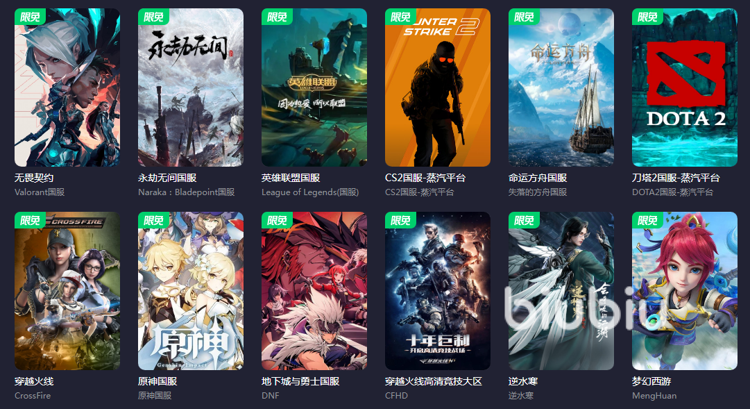 biubiu里還有很多限時(shí)免費(fèi)加速的游戲,這些游戲都被收錄在限免游戲?qū)^(qū)里,大家打開專區(qū)就能看到。專區(qū)里的游戲并不是一成不變,而是會(huì)更新的,平臺(tái)輪番更新游戲也是為了讓大家可以享受到更多類型的游戲,擴(kuò)展自己的游戲庫。