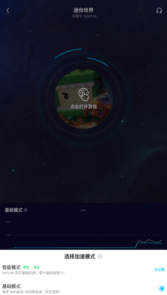 在biubiu加速器當(dāng)中,內(nèi)置了兩種游戲加速模式——基礎(chǔ)模式和智能模式,玩家可以按照自己的網(wǎng)絡(luò)狀況,選擇適合自己的加速模式,時刻保持自己游戲的流暢運行。