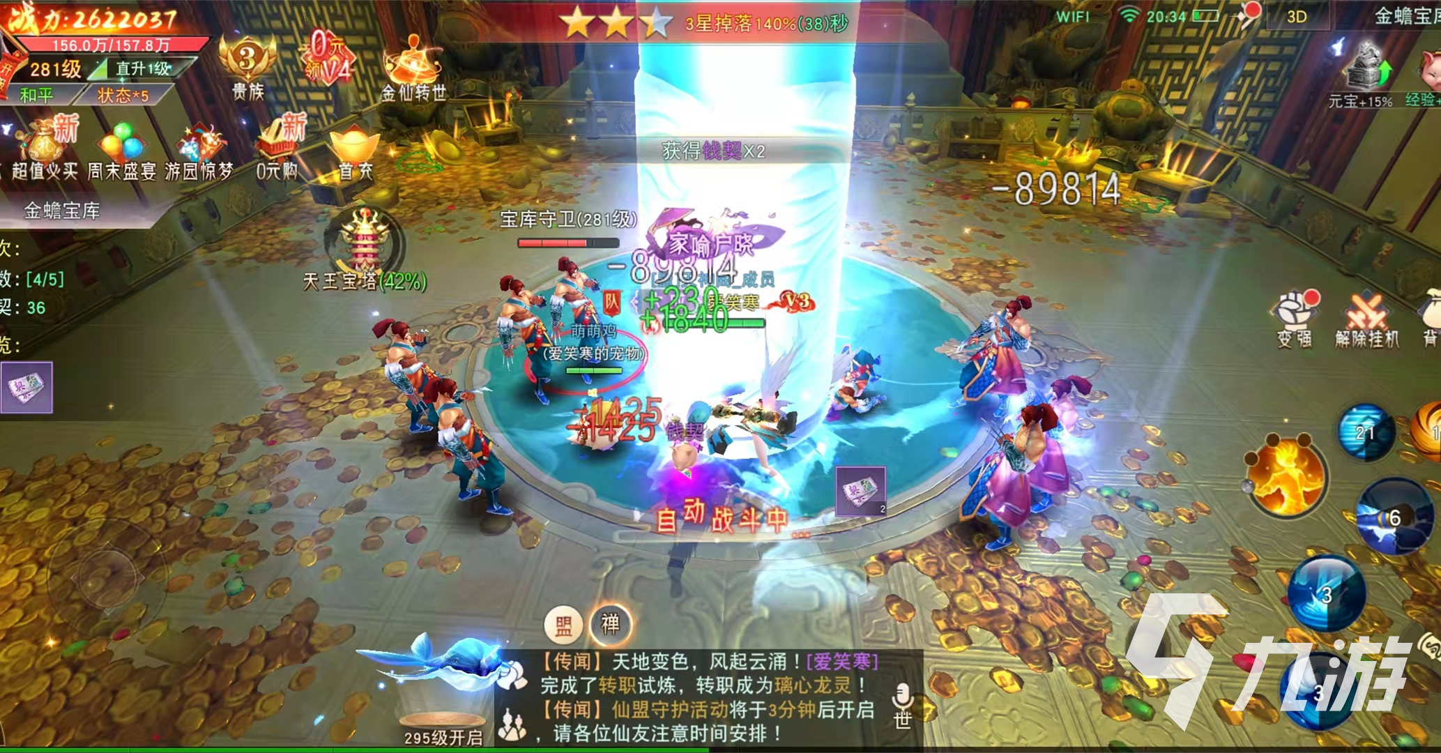 金蟬寶庫是一起來修仙手游的一個副本游戲,進(jìn)入到金蟾寶庫副本游戲的時候,玩家首先就可以看到一只大金蟾在看著玩家們,金蟬也是有等級的,小編的金蟬等級已經(jīng)達(dá)到275了,有的玩家比小編的等級還要高呢,這離不開玩家們每天的努力,金蟬寶庫的關(guān)卡是有星級設(shè)置的。