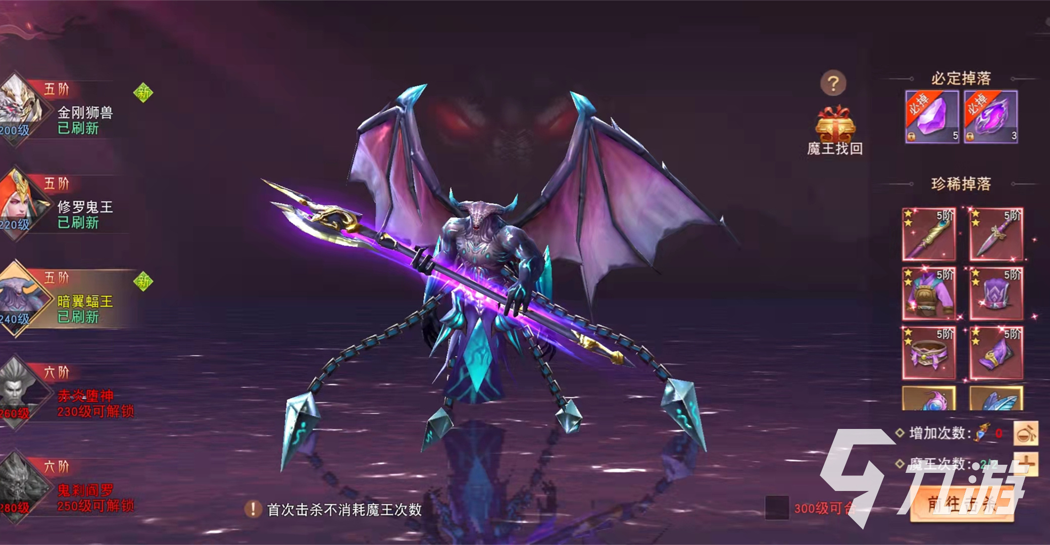 而且不費吹灰之力,做做任務(wù)就可以領(lǐng)取到初級強化石了,第二個可以在專屬魔王界面參與擊殺,就一定會掉落初級強化石五個和初級強化石仙器三個,玩家擊殺勝利還可以額外獲取幾個初級強化石和初級強化石仙器。