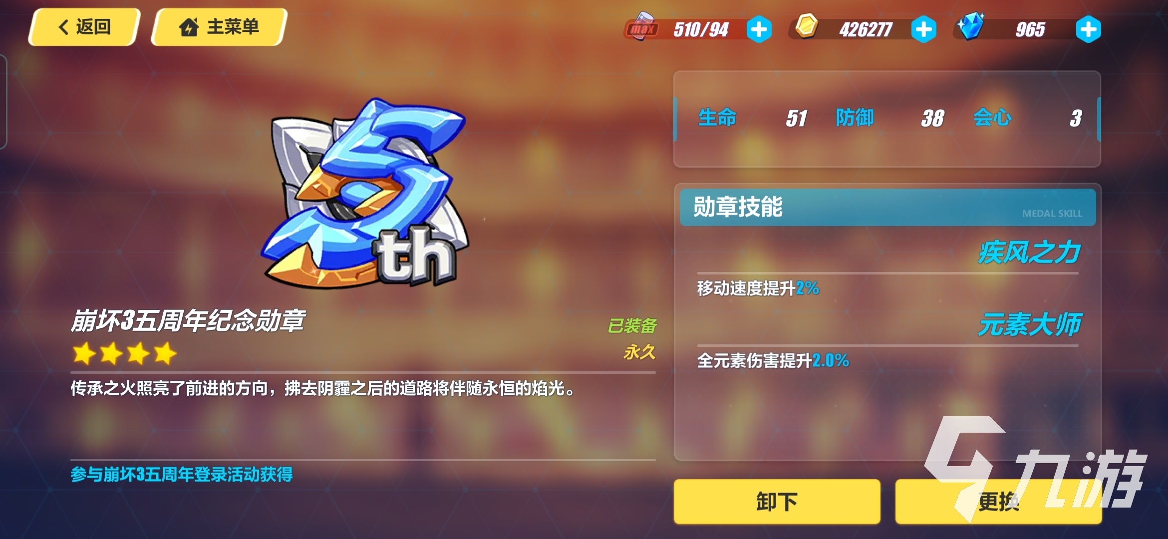 它可以為玩家的全體上陣角色提供移動速度的加成以及全元素的傷害提高,所以小編建議玩家如果還沒有勛章就可以用周年紀(jì)念的勛章也有很好的效果哦!