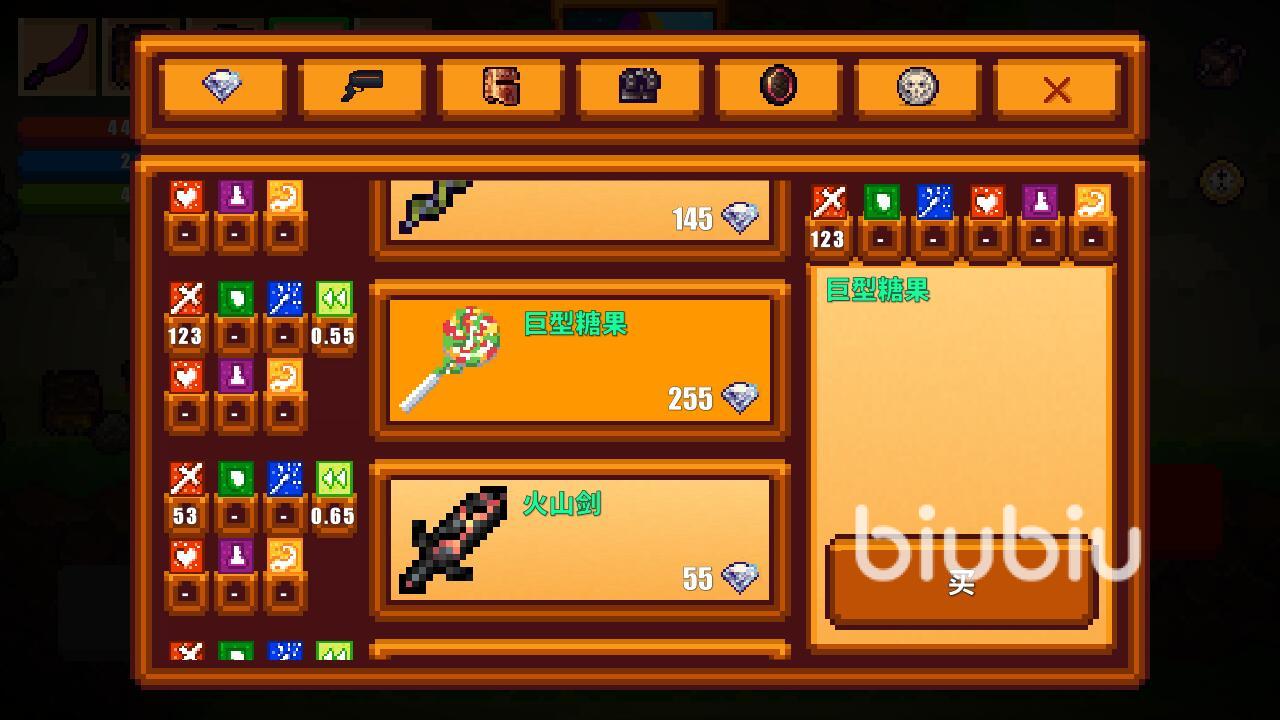 除了擊敗boss可以獲取到巨型糖果以外,像素鎮(zhèn)當(dāng)中的黑武士還正在出售巨型糖果,不過條件是255個鉆石。所以想要通過購買來獲取該武器的玩家,就需要根據(jù)自身的鉆石數(shù)量來作出決定,小編不建議大家直接進行購買。因為只要多花時間去戰(zhàn)斗區(qū)戰(zhàn)斗,就會有較高的概率得到巨型糖果。