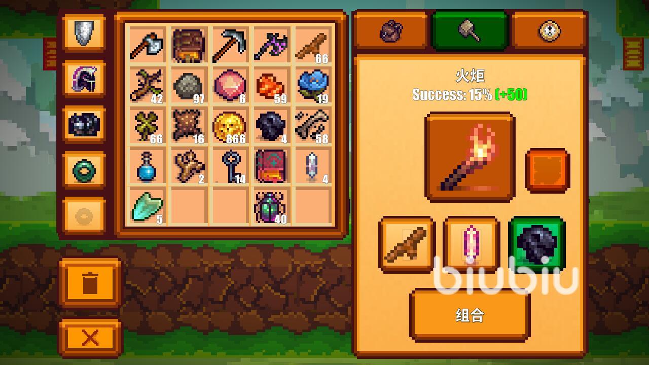 第二個(gè)會(huì)經(jīng)常需要使用的合成表為木材+紅水晶+煤,這三個(gè)材料組合會(huì)直接合成出一個(gè)火把?;鸢咽峭婕覀?nèi)ヒ巴饷半U(xiǎn)的基礎(chǔ)道具,因?yàn)榭梢灾苯訋椭婕覀冊(cè)诤谝沟那闆r下視野更高,避免被晚上出現(xiàn)的野怪襲擊。不論處于哪一個(gè)階段,火把都是玩家們需要的重要物品。