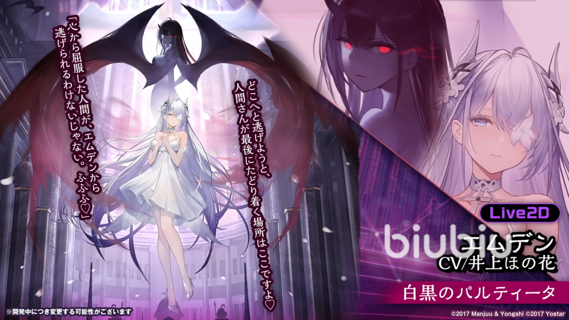 純白色的埃姆登無論在什么地方都是以一種優(yōu)雅且楚楚動人的形象示人,而純黑的埃姆登則展現(xiàn)出了一種支配者的形象,永遠是高人一等的視線。