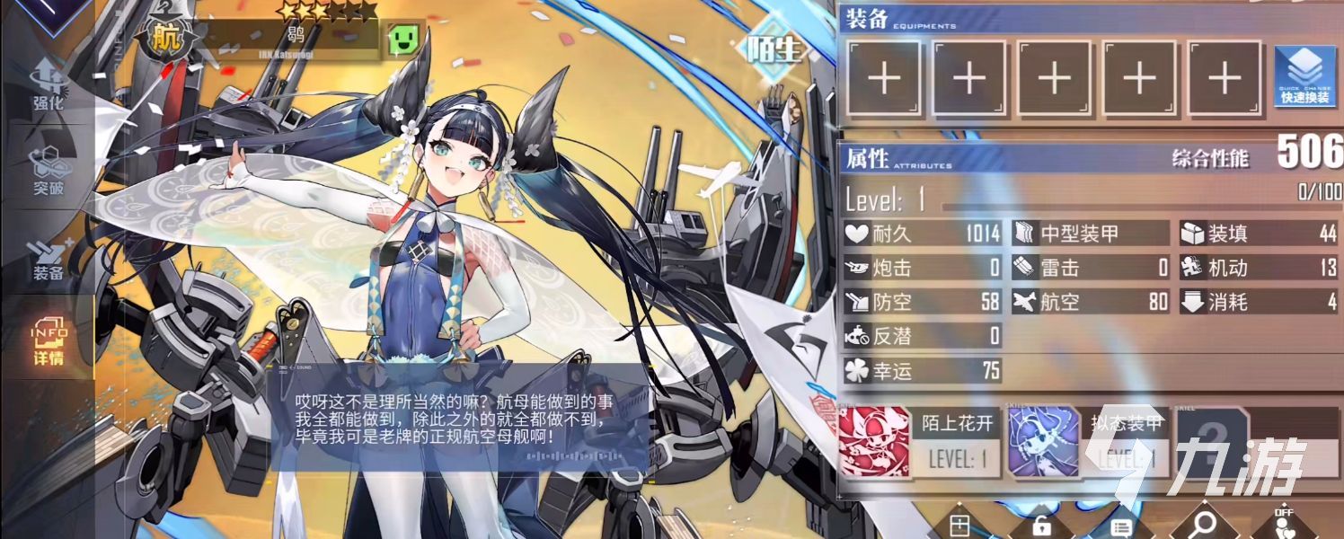 葛城她在六位新艦員中最特殊所屬的主要艦隊(duì)為航空母艦,并且擁有的航空能力以及耐久度,防空能力都是極高的,她作為戰(zhàn)斗機(jī)來使用的話,可以裝備艦載型bf109gto這件裝備,可以給其增強(qiáng)超高的航空作戰(zhàn)能力。
