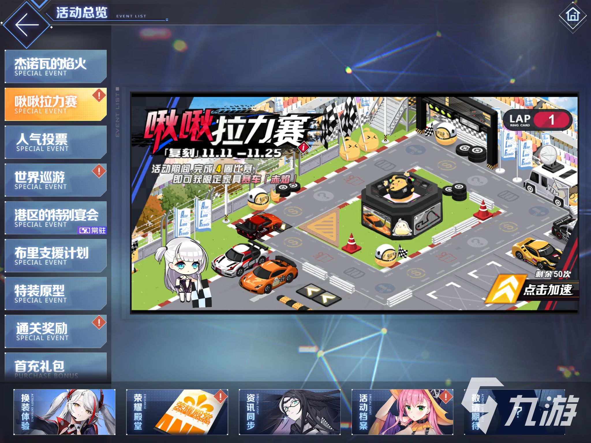 11月限時活動一共有兩個,一個是杰諾瓦的焰火,另一個則是復(fù)刻:啾啾拉力賽,這兩個活動會從11月11號一直持續(xù)到11月25號,而且獎勵豐富,玩法簡單。