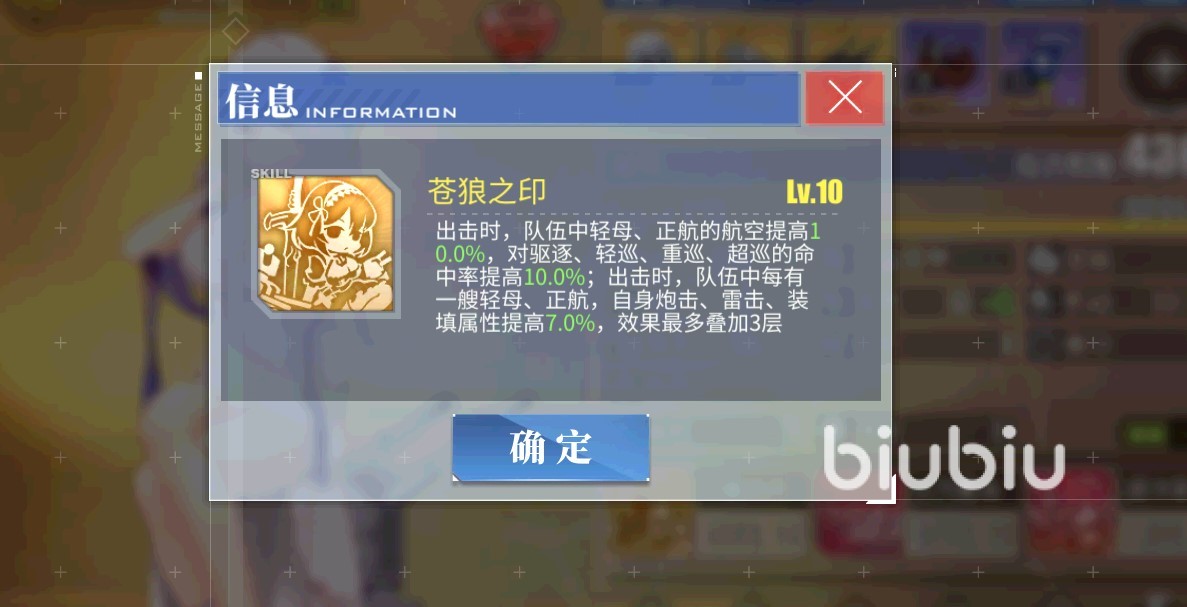 1技能蒼狼之印,提升隊伍里航母10%的航空值并提升它們對驅(qū)逐輕巡重巡超巡的10%的命中率。每有一艘航母,提升天狼星自身7%的炮雷裝填,最多疊3層,也就是說后排3航才會滿buff。2技能單純的提升20%炮擊。3技能專屬彈幕,彈幕形態(tài)一般。