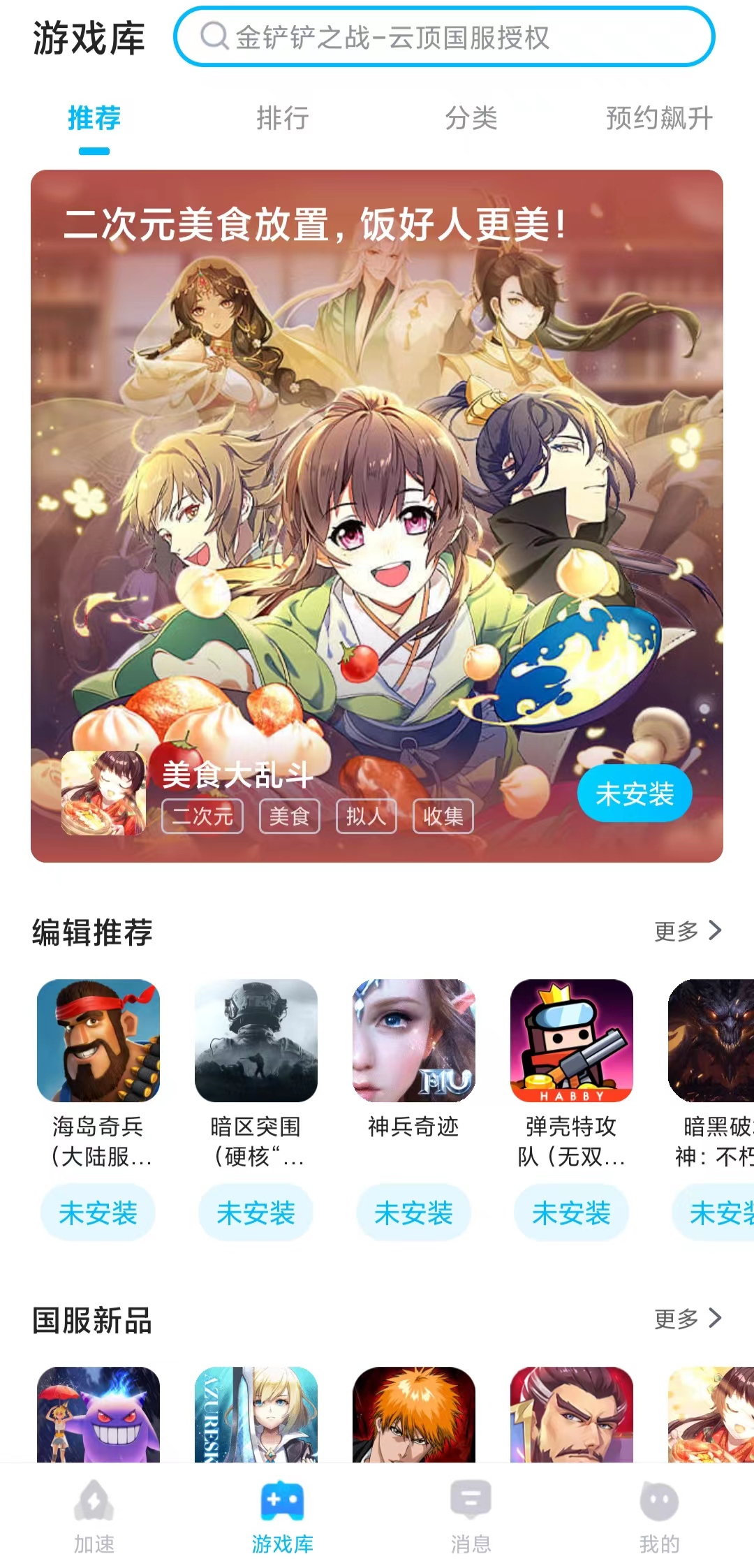 以上均完成后可進(jìn)行加速步驟,玩家只需點(diǎn)擊游戲圖標(biāo)右側(cè)的加速按鈕即可,剛下好游戲的玩家可點(diǎn)擊安裝界面上的加速鍵。