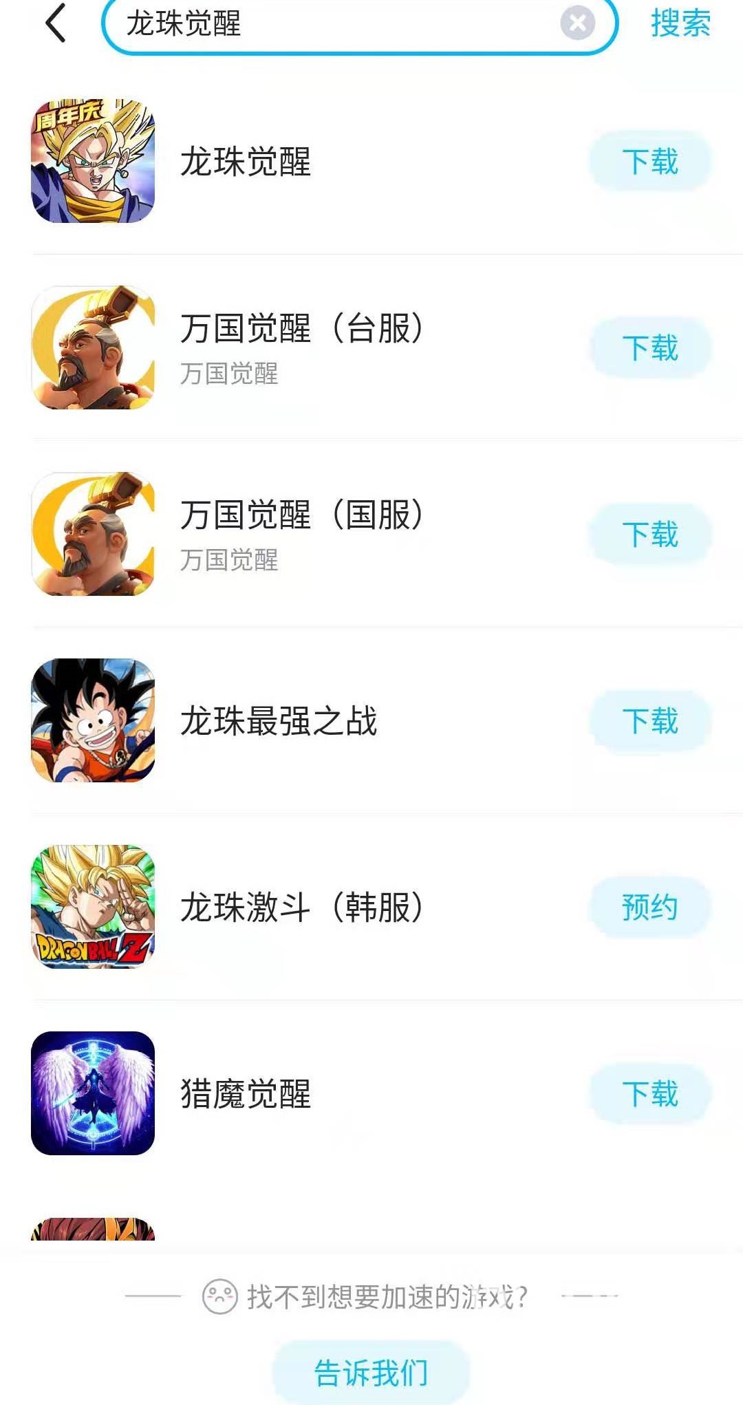 打開(kāi)以后,可以看到biubiu加速器的主頁(yè),在主頁(yè)右上角點(diǎn)擊搜索鍵,在搜索框中輸入龍珠覺(jué)醒,搜索結(jié)果一般都直接出現(xiàn)在搜索框下方,找到這款游戲,點(diǎn)擊右側(cè)的下載按鈕即可。