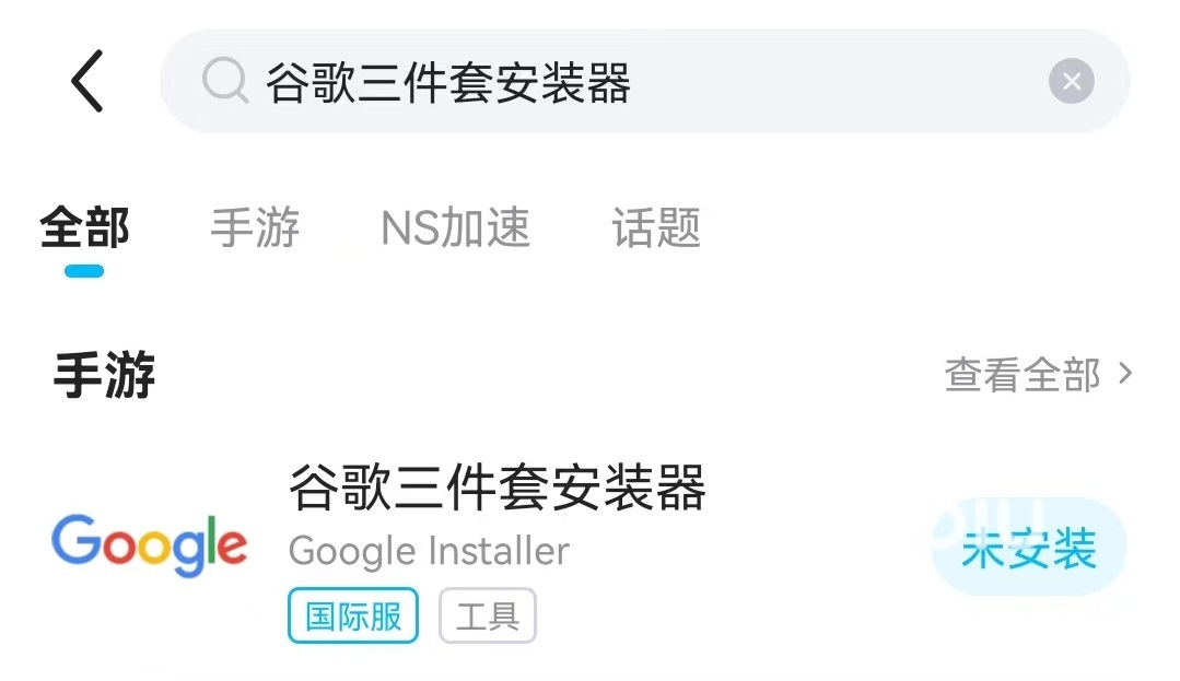 在國(guó)際服的黑色幸存者客戶端安裝到手機(jī)中之后,現(xiàn)在還不能開啟加速進(jìn)入客戶端中體驗(yàn)。而是需要先去biubiu加速器的資源庫(kù)里搜索谷歌服務(wù)組件,找到三件套安裝包后安裝到手機(jī)中才算完成,準(zhǔn)備操作。