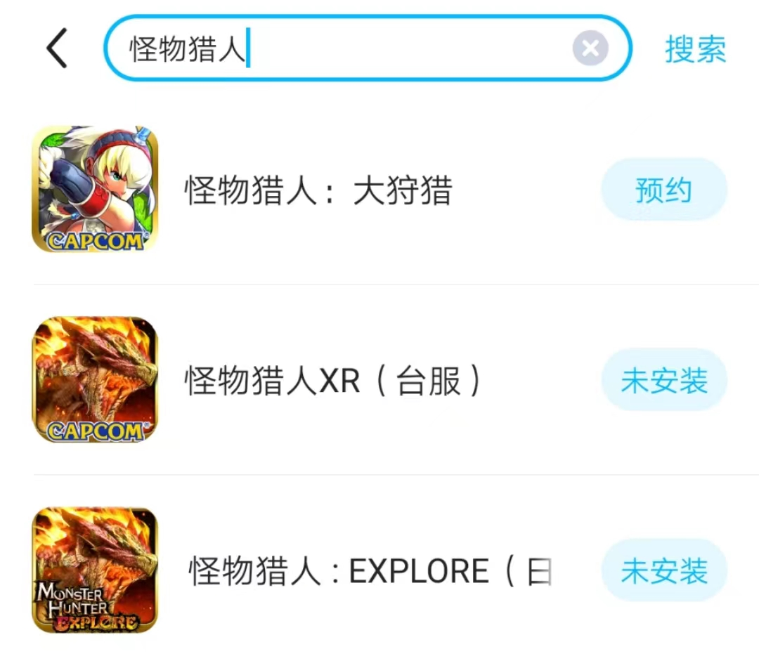 安裝好加速器以后大家還能在里面下載游戲,搜索怪物獵人XR就可以了,看到有臺(tái)服和日服。