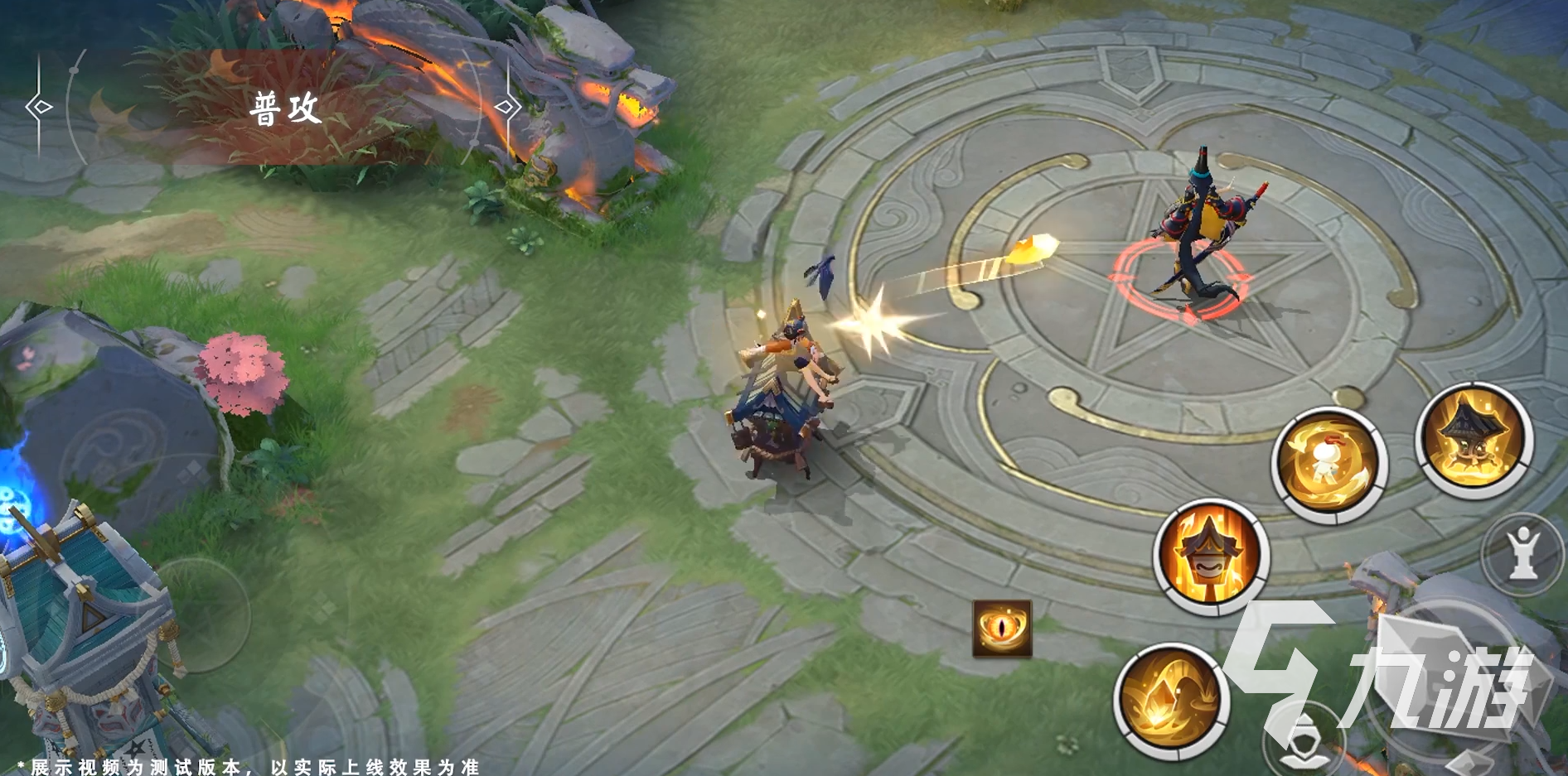 一技能可以丟一個(gè)小光球石頭,若是有其他的單位或者地形。就會(huì)多彈幾次,給敵人造成減速效果,可以疊加。