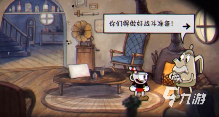 茶杯頭手游一開始就是一段劇情,講述了在墨池島的茶杯頭以及馬克杯兩個(gè)兄弟與魔鬼賭場內(nèi)的魔王打賭,自然是茶杯頭兩兄弟輸了,魔王要求二人根據(jù)名單去收集靈魂。在與桌子上的卡片互動(dòng)之后我們就進(jìn)入了游戲的新手教學(xué)關(guān)卡。
