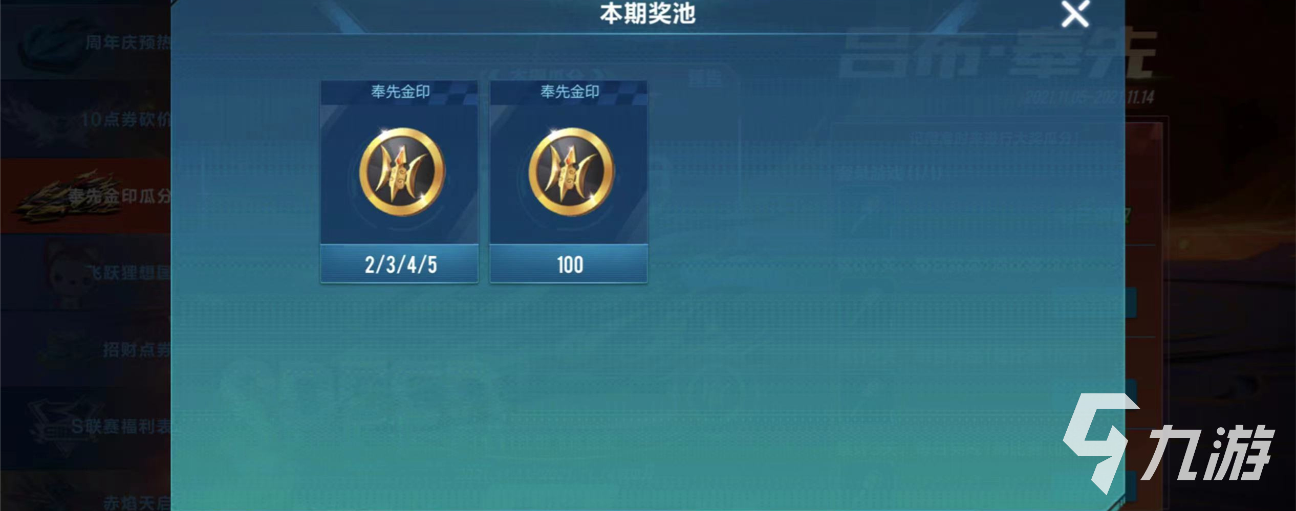 活動(dòng)時(shí)間為2021年11月5日至2021年11月14日截止,玩家需要登錄游戲做任務(wù)來領(lǐng)取奉先金印瓜分鑰匙,每天登錄可以得到1個(gè)金印鑰匙,還有就是要求玩家每日完成1局比賽,可以得到1個(gè)金印鑰匙,累計(jì)2天每日完成1局比賽,累計(jì)3天每日完成1局比賽,以此類推,每天都可以得到4個(gè)。