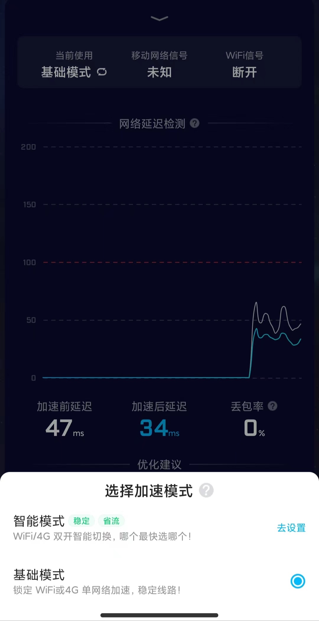 看完詳細(xì)內(nèi)容后就可以開始加速了。加速鍵就顯示在圖標(biāo)的旁邊,點(diǎn)擊即可進(jìn)入到加速界面,加速界面上就兩個按鈕,停止加速鍵和切換鍵。