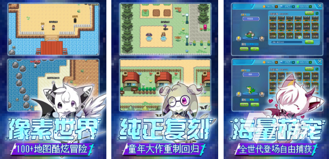 像素世界下的回合制游戲《口袋新世代》來啦,這里充滿著童年的回憶,游戲中有著上百個地圖供玩家去自由的冒險,還有著海量的萌寵等著你去捕獲。這里總共收錄了一千多中可愛的萌寵,不過它們藏在地圖中的各個角落中,你需要將它們慢慢的都收集回來,然后將它們培養(yǎng)成獨一無二的精靈。