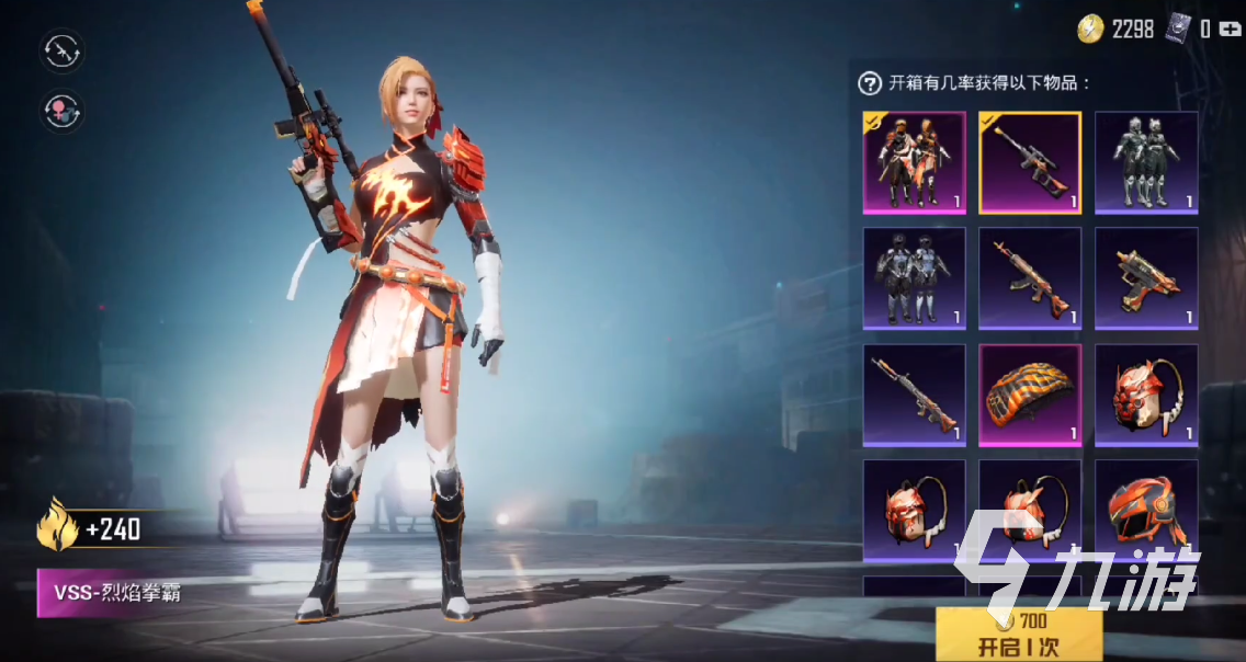 女版衣服套裝,同樣叫做烈焰拳霸。與男裝的不一樣,主要是服飾的區(qū)別。女生穿著一身旗袍裝,并且裸露的地方也稍微多一點(diǎn)?;鹧嬖貨]有那么濃厚,只是在衣服上面點(diǎn)綴一下。肉眼可見的長靴顯得英姿颯爽,而且頭發(fā)也是黃色的,很長飄逸。身上巖板著白色的繃帶,看起來就像練家子。