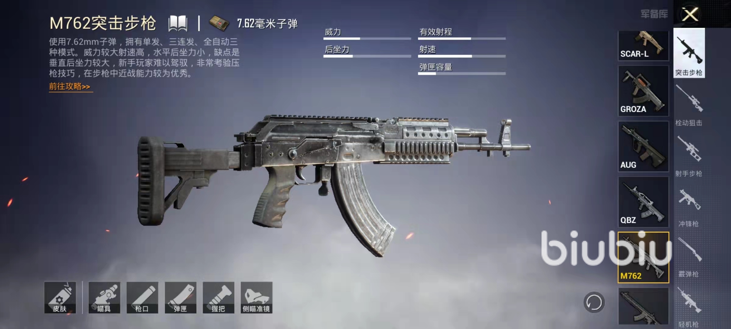 M762是常規(guī)步槍中強(qiáng)度最高的一把槍?zhuān)邆透呱渌儆谝簧?。缺點(diǎn)是比較后坐力比較大,非常吃配件,配件非垂直握把、槍口補(bǔ)償器不可,不然后坐力大的會(huì)讓玩家壓不住。M762后坐力高,但是中距也是可以用的,玩家只要預(yù)瞄的準(zhǔn),憑借M762的高射速,中距離也可以瞬秒敵人。當(dāng)然M762最擅長(zhǎng)的距離還是近距離作戰(zhàn),殺人至少比M4要少一輛槍。