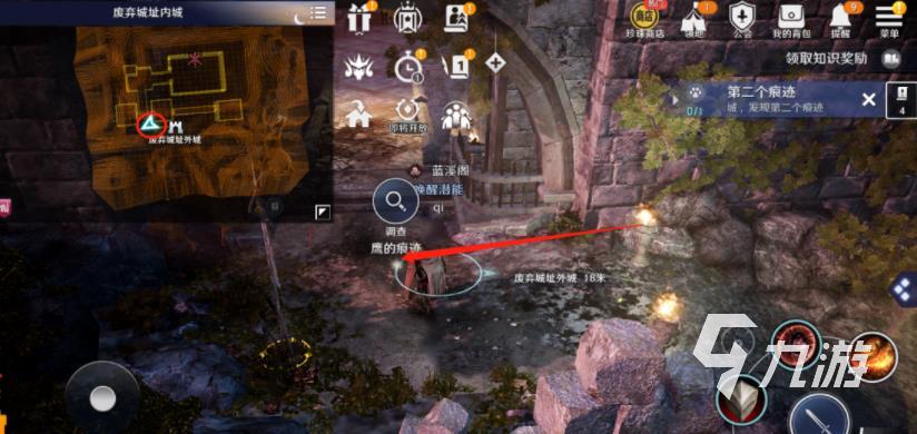 完成這個任務(wù)之后,就能開啟領(lǐng)路鷹的任務(wù)了,需要找到鷹的三個蹤跡,第一個就在boss入口的左后方,如下圖所示;