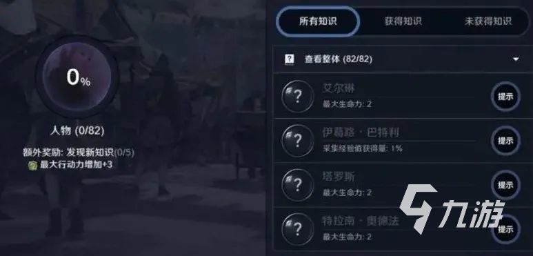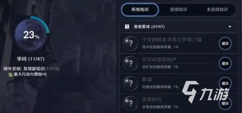 第二個是學問知識,小伙伴們在做主線任務的時候就能收集到大部分的學問知識點,此外在和npc或者場景互動的時候也能收集到一些學問知識點。學問類的知識點一共可以找到十五個,同樣可以提升行動力,不過這一類知識點可以提供的戰(zhàn)斗屬性提升不多,而且部分知識點也不容易找,因此不作為優(yōu)先項來收集。