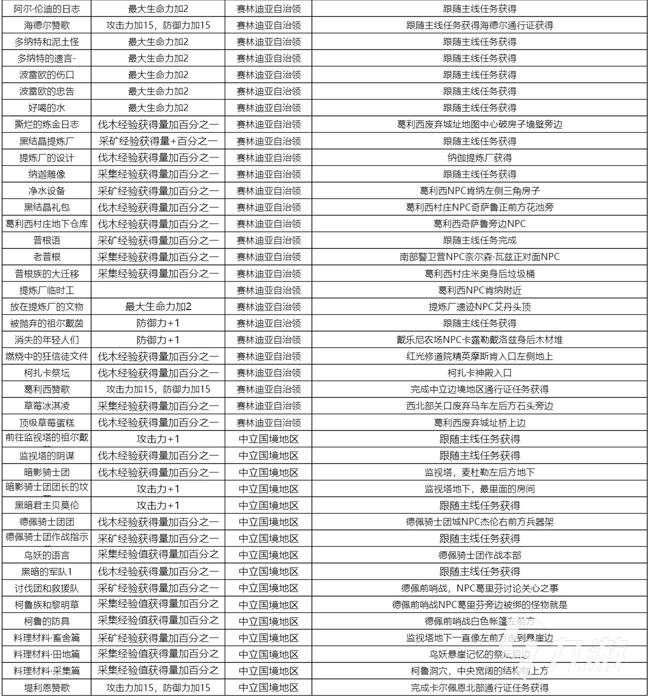 第四個是冒險知識,小伙伴們通過主線任務以及支線任務就可以收集到,而且相比較其他類別的知識點,冒險知識的收集難度也是最低的了,基本上在做完大部分的主支線任務,這一類知識也是收集的差不多了。不過通過冒險知識,小伙伴們可以得到的戰(zhàn)斗屬性提升也是不多的。