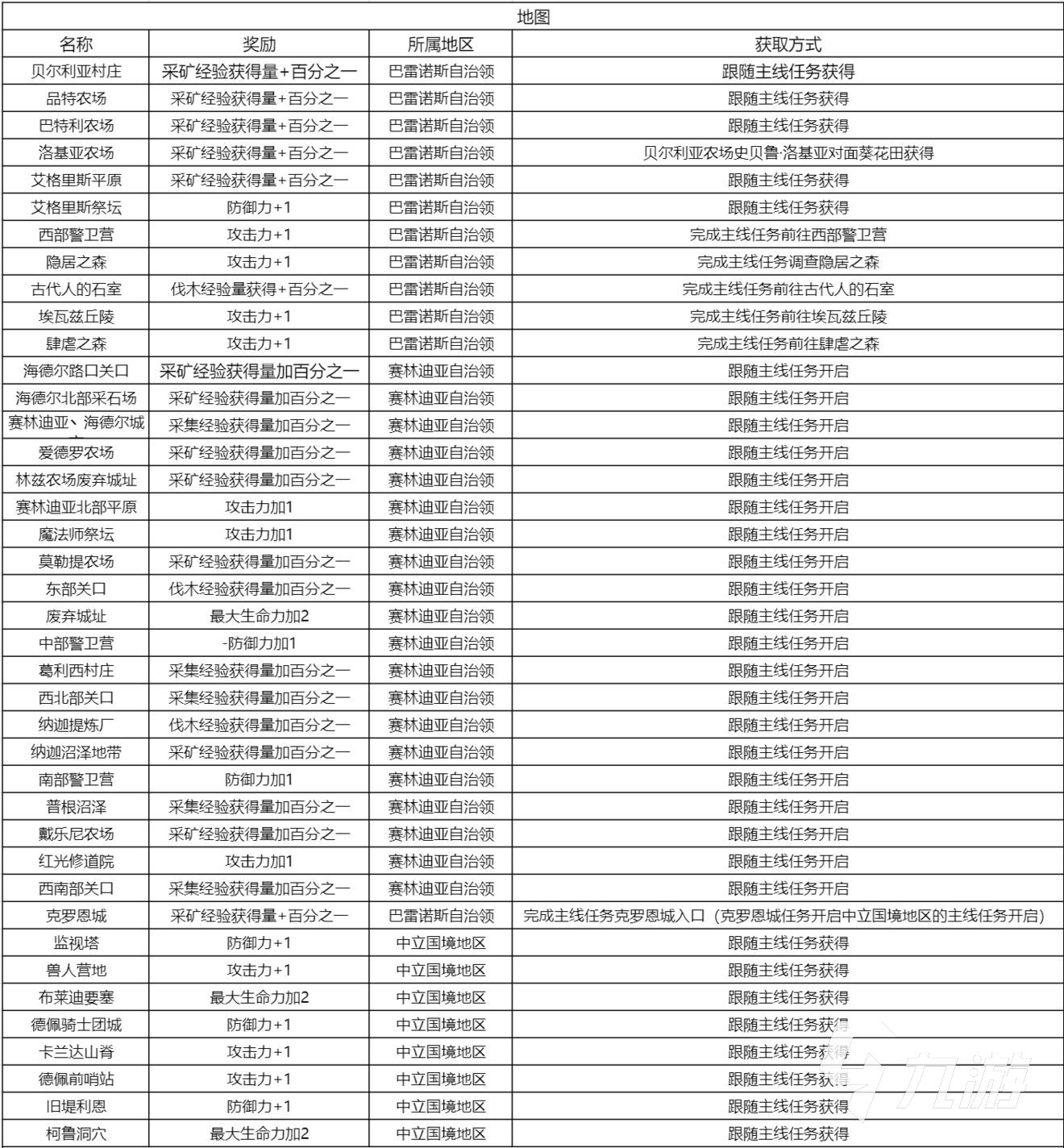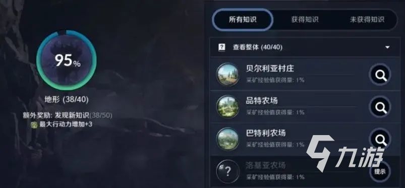 首先來看第一大類的知識,第一個說的就是地形知識,主要就是在探索新地圖場景時可以收集到的知識,小伙伴們在跑圖的過程中就可以順手將這些知識點一一收集了,一共可以找到四十個,全部收集的話將可以得到行動力的提升。而除了這個額外獎勵之外,小伙伴們在收集單個知識點的時候也可以拿到相應的獎勵,而它們的獎勵主要是戰(zhàn)斗屬性的提升,也有一些生活屬性的加成,建議小伙伴們可以優(yōu)先去做。