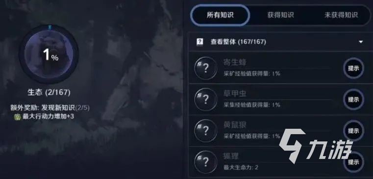 第三個是生態(tài)知識,小伙伴們在打怪的時候就能收集此類知識點了,簡單一點來說,遇到對應的怪物,打就對了。不過由于一些怪物是有刷新時間的,如果時間不充裕的話,也可以等做完了日常任務之后再去打怪掛機。而通過這一類知識點,小伙伴們也能得到不少的戰(zhàn)斗屬性提升,因此也是推薦小伙伴們?nèi)プ龅摹?/p>