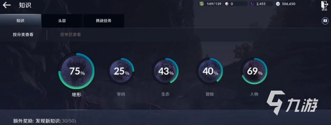 小伙伴們在游戲里面打開【菜單】,就可以找到【知識】這個玩法,而在知識界面,可以看到一共分為三個類別,第一類是一般知識,第二類是頭目類(也就是boss類)的知識,第三類則是挑戰(zhàn)任務類的知識。其中,第一類還可以繼續(xù)細分,可以分為地形、學問、生態(tài)、冒險以及人物這五種,每一種都都囊括了不同類型的知識。