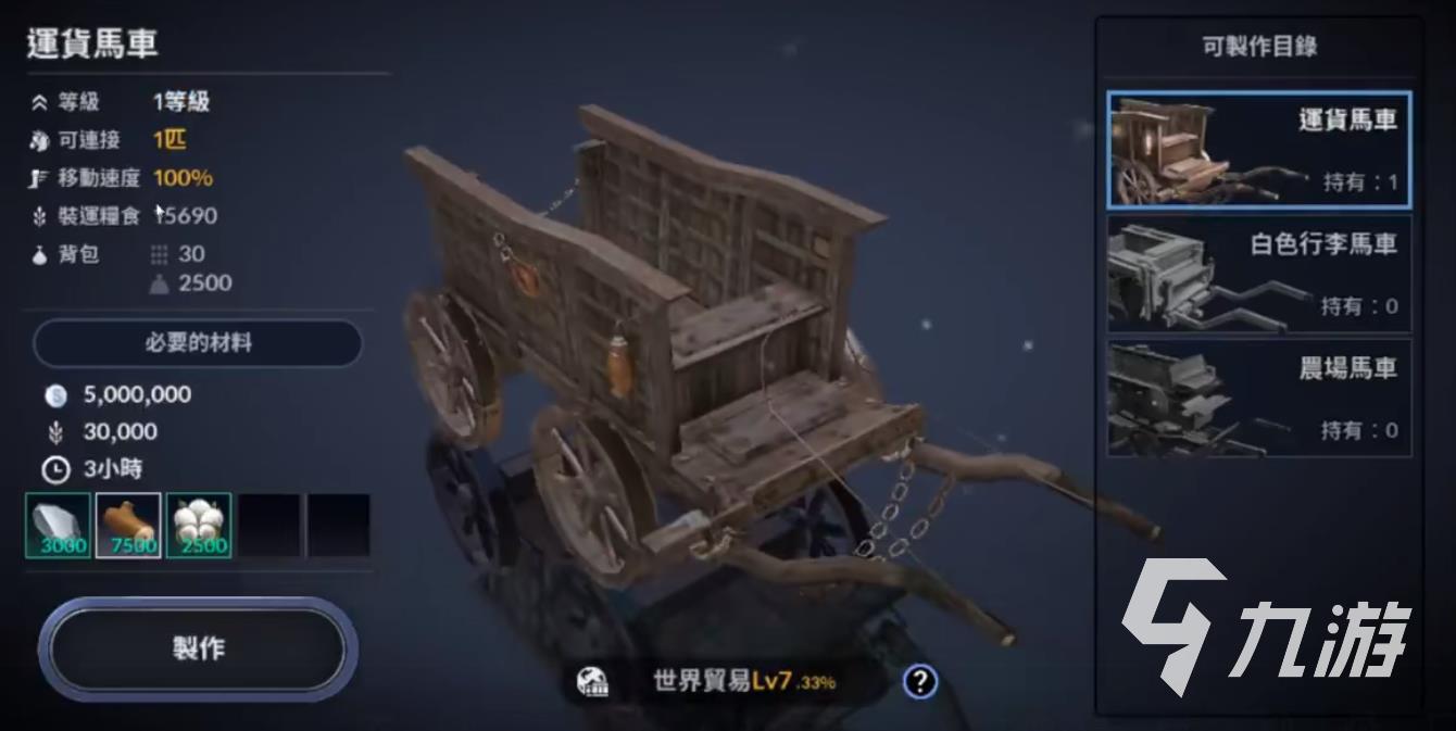 第二步是需要一輛馬車(chē),系統(tǒng)最開(kāi)始會(huì)提供一輛初級(jí)的馬車(chē)讓小伙伴們使用,給這輛馬車(chē)配上馬,就能讓它跑起來(lái)了。此處同樣要提醒一下,小伙伴們選擇的馬與馬車(chē)的負(fù)載量是息息相關(guān)的,二者是呈正比的一個(gè)關(guān)系,馬的品質(zhì)越高,自然馬車(chē)可以負(fù)載的東西就越多。當(dāng)然前期的時(shí)候,小伙伴們手上肯定也是沒(méi)什么好馬的,就不用太糾結(jié)于馬的品質(zhì),等有了一些高級(jí)馬之后再換也是不遲的。