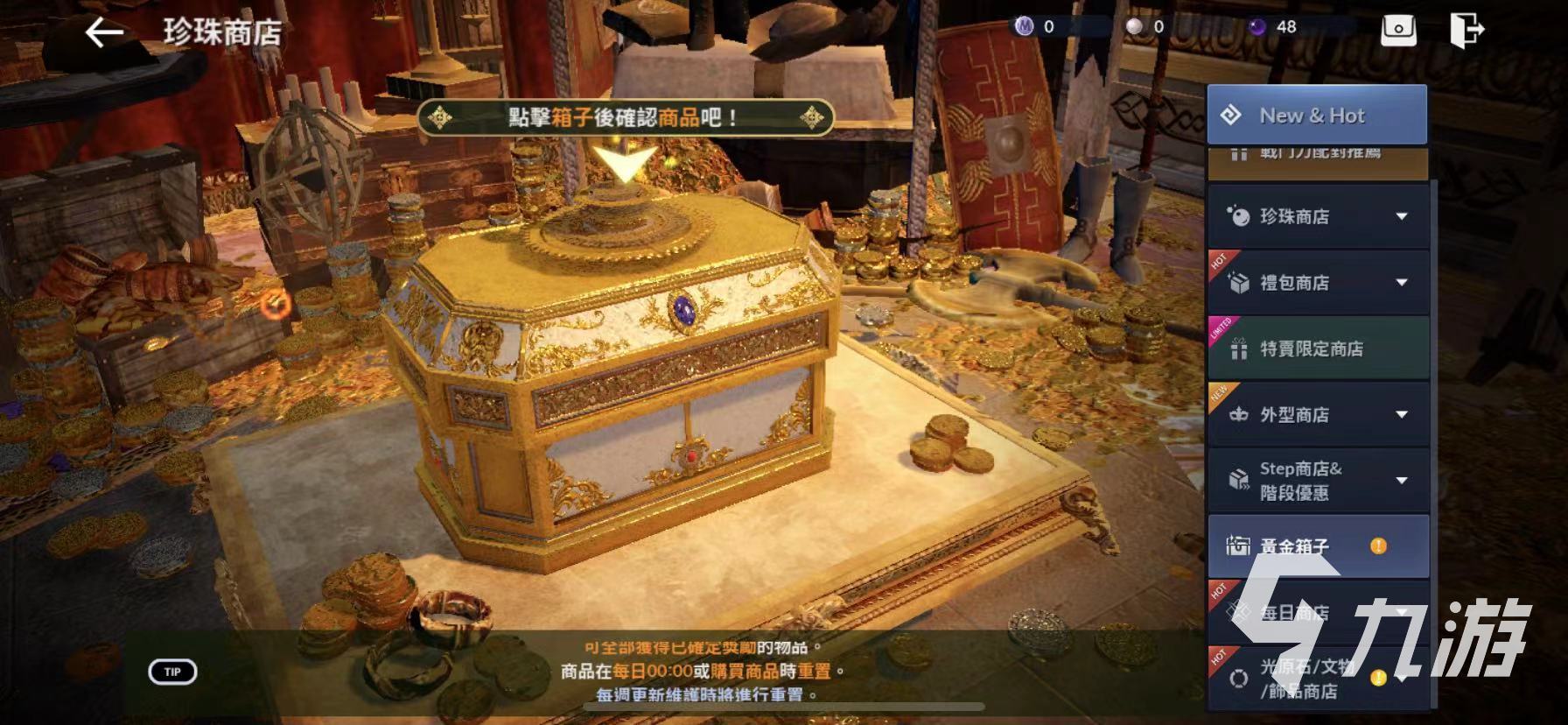 1、玩家可以在商店中的用750黑珍珠購(gòu)買(mǎi)黃金箱子,將會(huì)有一定的幾率獲得煉金石。