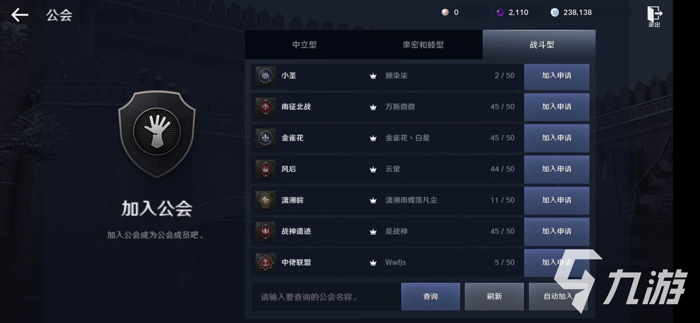 會長能設(shè)定一些進入公會的門檻、要求,是無法申請還是自由加入又或是申請需要審批。