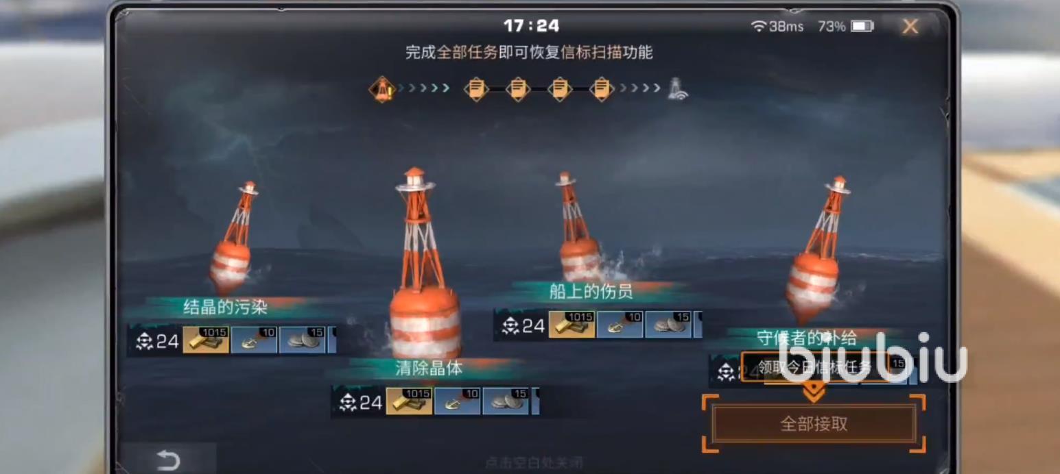 將這些任務(wù)都完成以后,就能恢復(fù)信標(biāo)掃描功能,小伙伴們點(diǎn)下方的【全部接取】,然后就可以跟著任務(wù)指引來(lái)完成這幾個(gè)任務(wù),基本上就是去信標(biāo)附近進(jìn)行掃描,掃描之后就能得到相應(yīng)的位置,接著就可以自動(dòng)導(dǎo)航前往對(duì)應(yīng)位置;