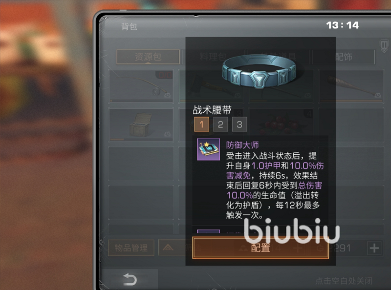 當(dāng)我們領(lǐng)取到了腰帶之后,就可以點(diǎn)進(jìn)背包進(jìn)行裝備了。當(dāng)然戰(zhàn)術(shù)裝備也都是可以升級(jí)的,在前期還是比較好用的,一些新手副本中是完全可以滿(mǎn)足我們的需求。當(dāng)我們?cè)诒嘲c(diǎn)擊腰帶之后,腰帶會(huì)顯示有三個(gè)插槽,讓我們裝備相應(yīng)的模塊用以提升我們的戰(zhàn)斗力。