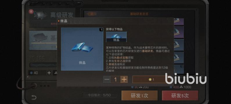 芯片除了升級(jí)之外還可以研發(fā)而通過(guò)研發(fā)功能,我們可以得到更高等級(jí)的芯片以及一些特殊效果的芯片。當(dāng)然每一次的研發(fā)都會(huì)消耗相應(yīng)的材料,每一次都要消耗八十個(gè)稀有微晶以及四百個(gè)金條。這些材料我們通過(guò)平時(shí)的任務(wù)或者氪金都可以獲得。