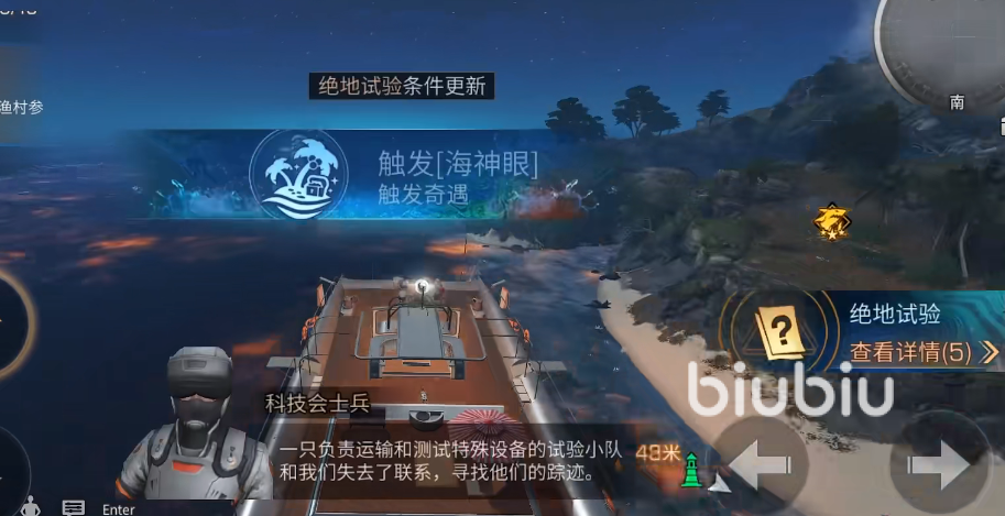 首先玩家需要先前往海神眼這個位置,在這附近就會觸發(fā)絕地試驗(yàn)任務(wù)。觸發(fā)奇遇任務(wù)之后,玩家將船停在一個凹進(jìn)去的海岸邊,然后就會刷新一波怪,玩家可以利用船上的建造區(qū)域使用試劑對這些怪進(jìn)行攻擊,在這個區(qū)域這些怪是無法攻擊到玩家的,所以可以放心收割。