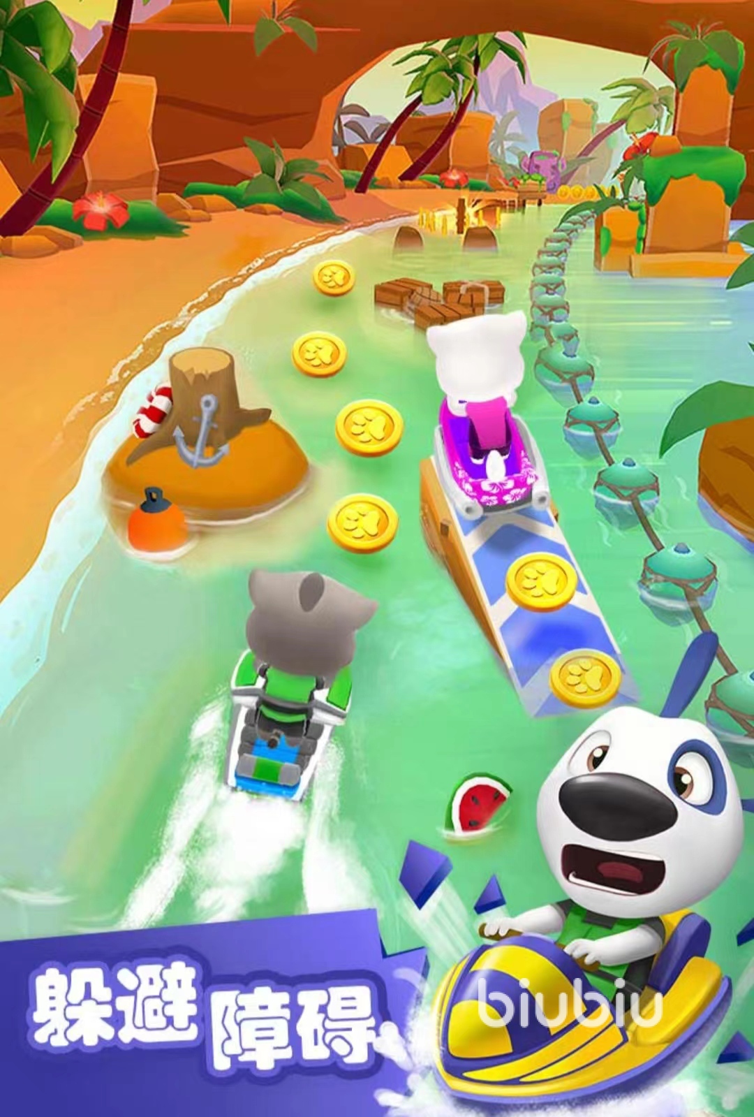 既然已經(jīng)打開了結(jié)果界面,不妨好好了解一下該游戲的特性。最明顯的一點(diǎn)是它的入玩門檻很低,操作及其簡單,注意控制屏幕左右兩側(cè)的搖桿即可操控摩托艇,想加速時(shí)點(diǎn)擊搖桿上邊的加速按鈕即可,整體模式有點(diǎn)類似于跑酷,逃跑類手游,輕輕動(dòng)動(dòng)手指就能操縱主角移動(dòng)或前進(jìn)。其次是它卡通可愛的畫面,游戲場景設(shè)置的不大但充滿了童趣,角色湯姆貓也在原來的基礎(chǔ)上作出了改動(dòng),弱化了它的滑稽感,強(qiáng)化了它的可愛外表,其駕駛工具摩托艇的顏色,類型也作出了變動(dòng),極大地滿足了大家想換裝的心愿。