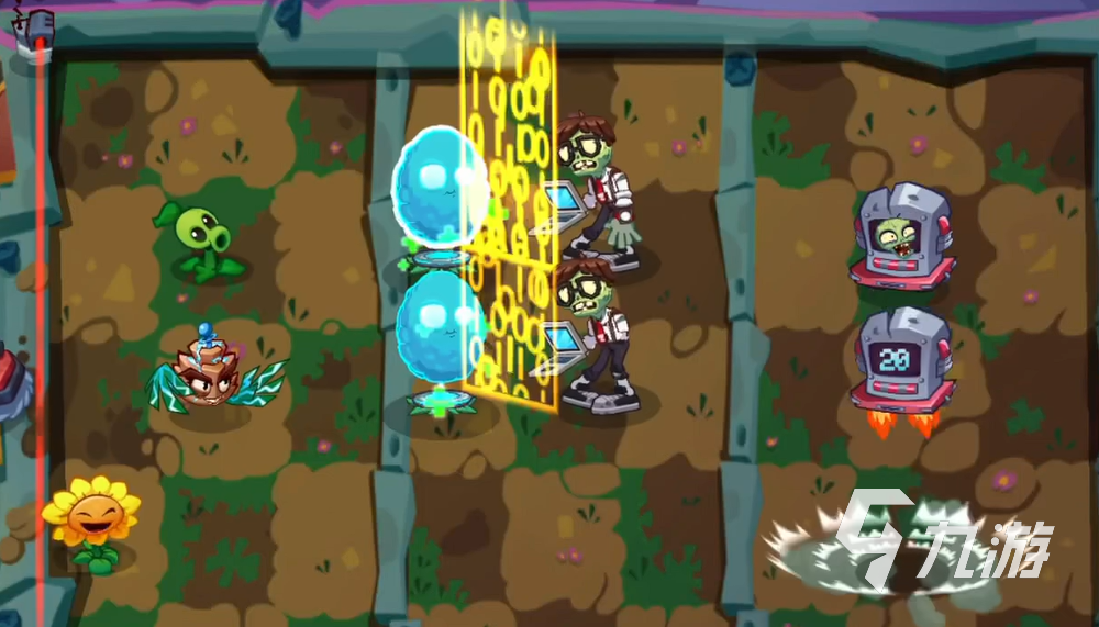 另外還有電流供給加強的效果,只要植物互相串聯(lián)起來的話,就能獲得巨大的攻速加成,并且可以讓子彈分裂,以此造成更高的傷害。然后將帶有電磁發(fā)射裝置的地方,都放上一些電系植物,這樣就可以保證其他植物不被受到額外的傷害。