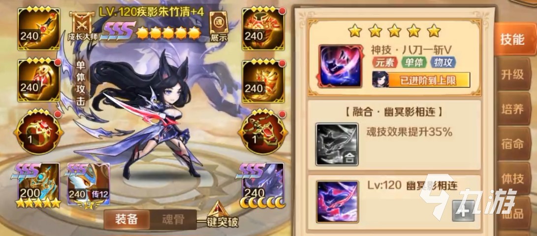 第四魂技暗影意志:疾影會根據(jù)敵方移動速度來增加自身的傷害,對方速度越低所加成的傷害越高。