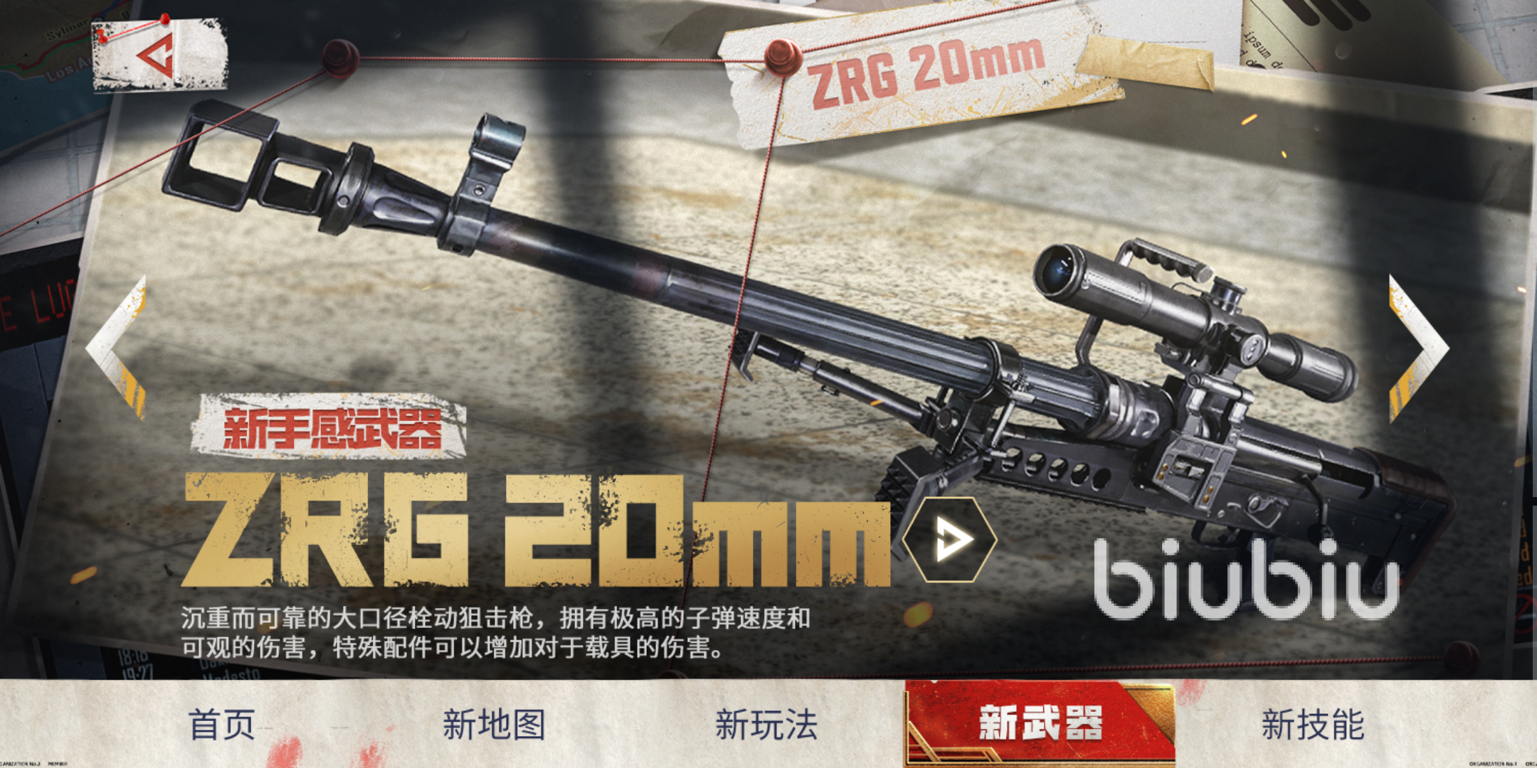 隨之上線的還有兩件新武器,一件是新手感武器ZRG 20mm,是大口徑的栓動狙擊槍,有著很高的子彈速度和較高的傷害,如果配上特殊的裝備還可以讓其增加傷害。