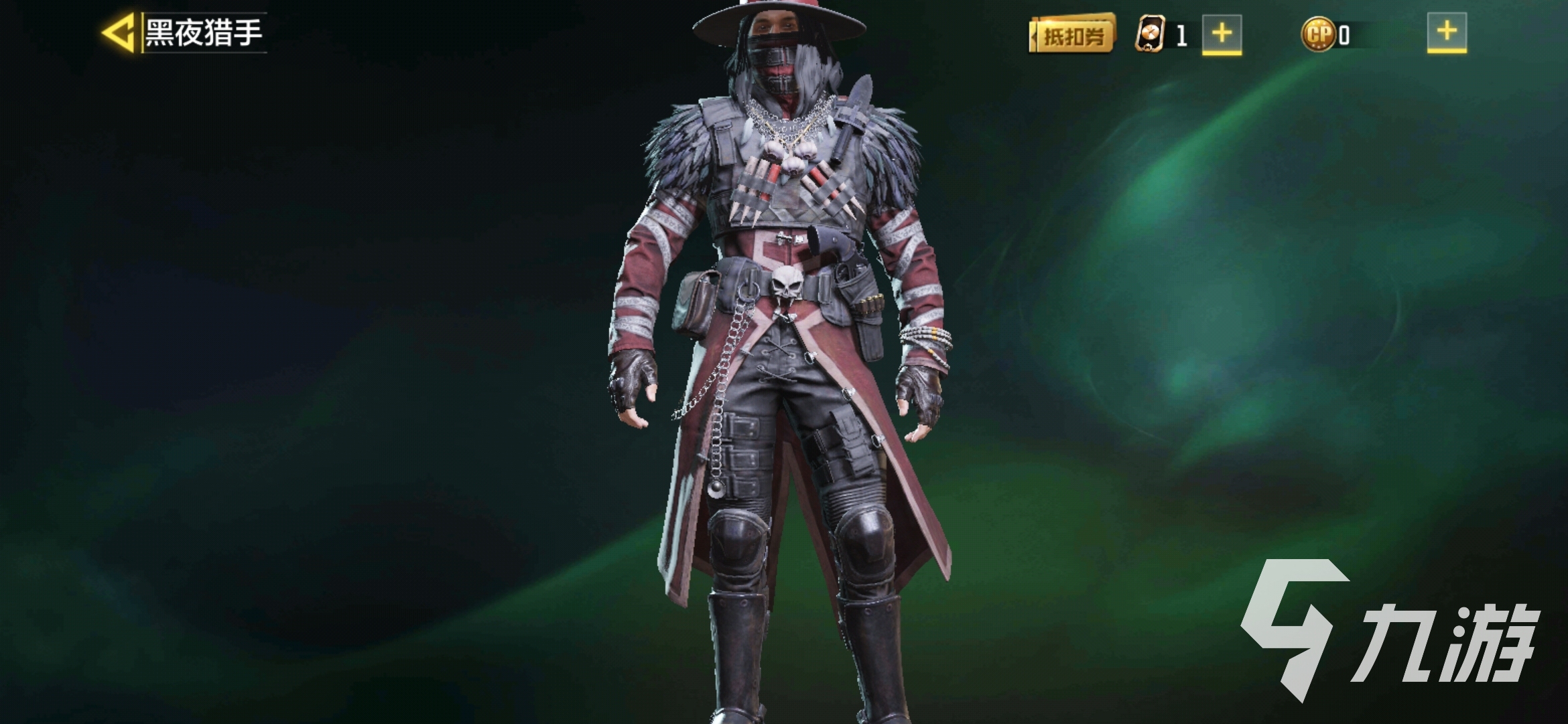 外觀特點:一抹紅棕色的衣角和紅棕色的袖子在黑色裝扮上點綴,在兇狠的外表下增添了血腥效果,克魯格-黑夜獵手壓低了帽檐,帶上黑色的口罩,肩部是由特殊的羽毛制成,簡直是天生的特戰(zhàn)兵。