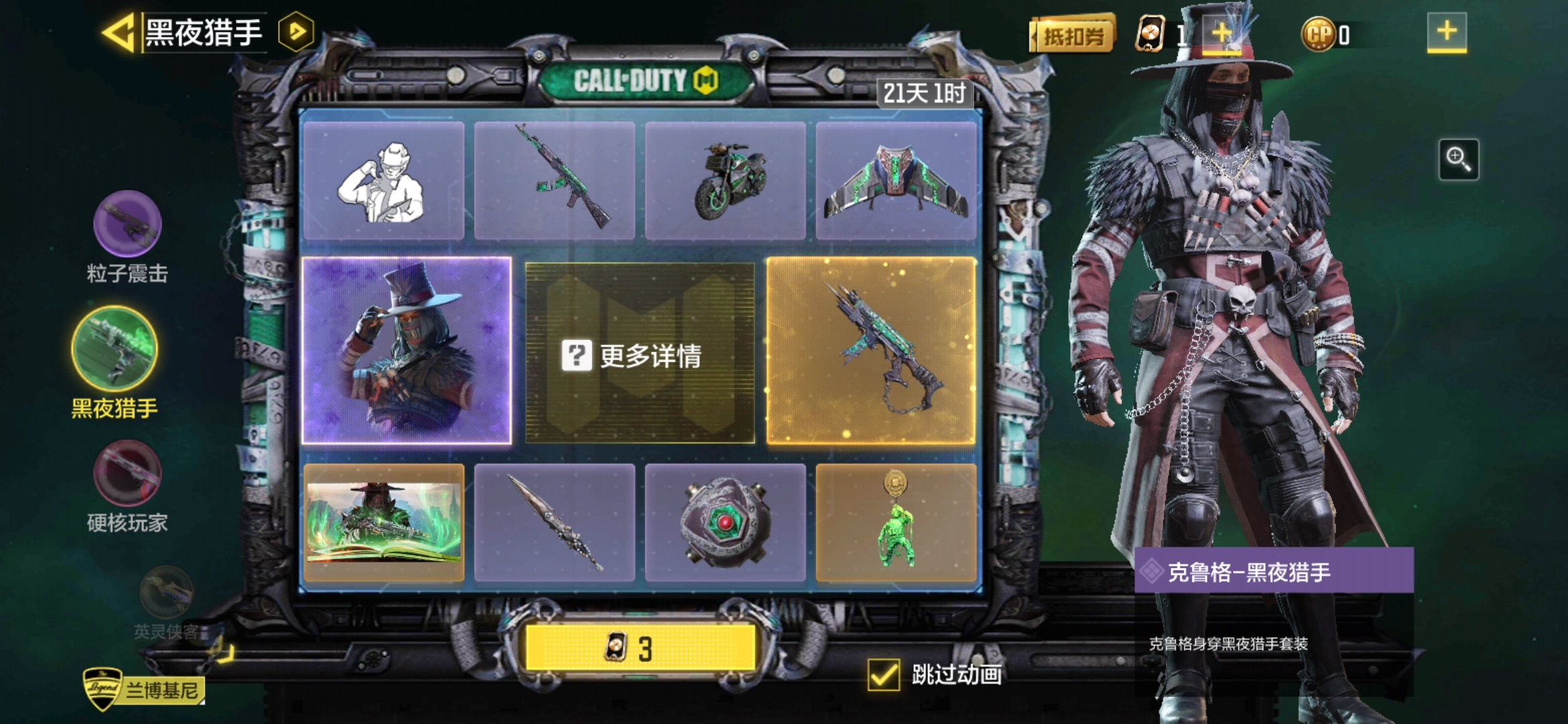 克魯格-黑夜獵手?jǐn)y手傳說級武器靈魂羈絆,在黑暗中散發(fā)出幽幽的暗綠光,仿佛在宣布戰(zhàn)斗已經(jīng)開始。作為優(yōu)秀的獵手,他是從不追逐名聲的,而是憑借自身極為優(yōu)秀的技術(shù)讓對手望而生畏。