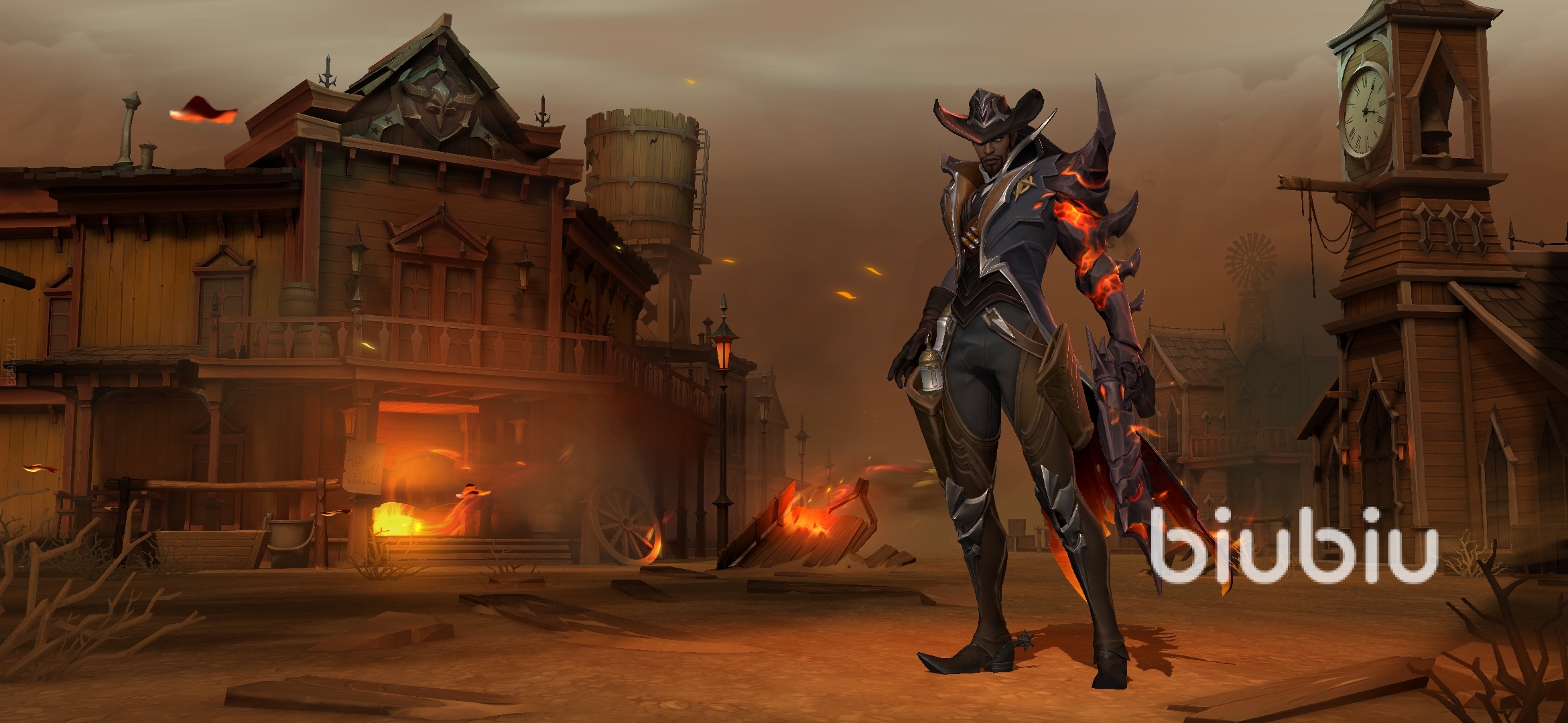 西部魔影 盧錫安:一個(gè)臂膀是地獄造型,又帥又霸氣,轉(zhuǎn)槍很靈魂,自帶粒子特效,放技能時(shí)的火彈特效比較炫酷。