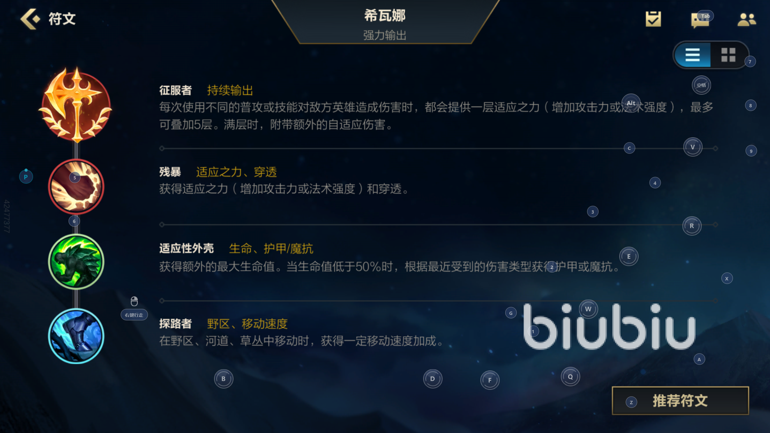 符文:征服者、殘暴、適應(yīng)性外殼、探路者